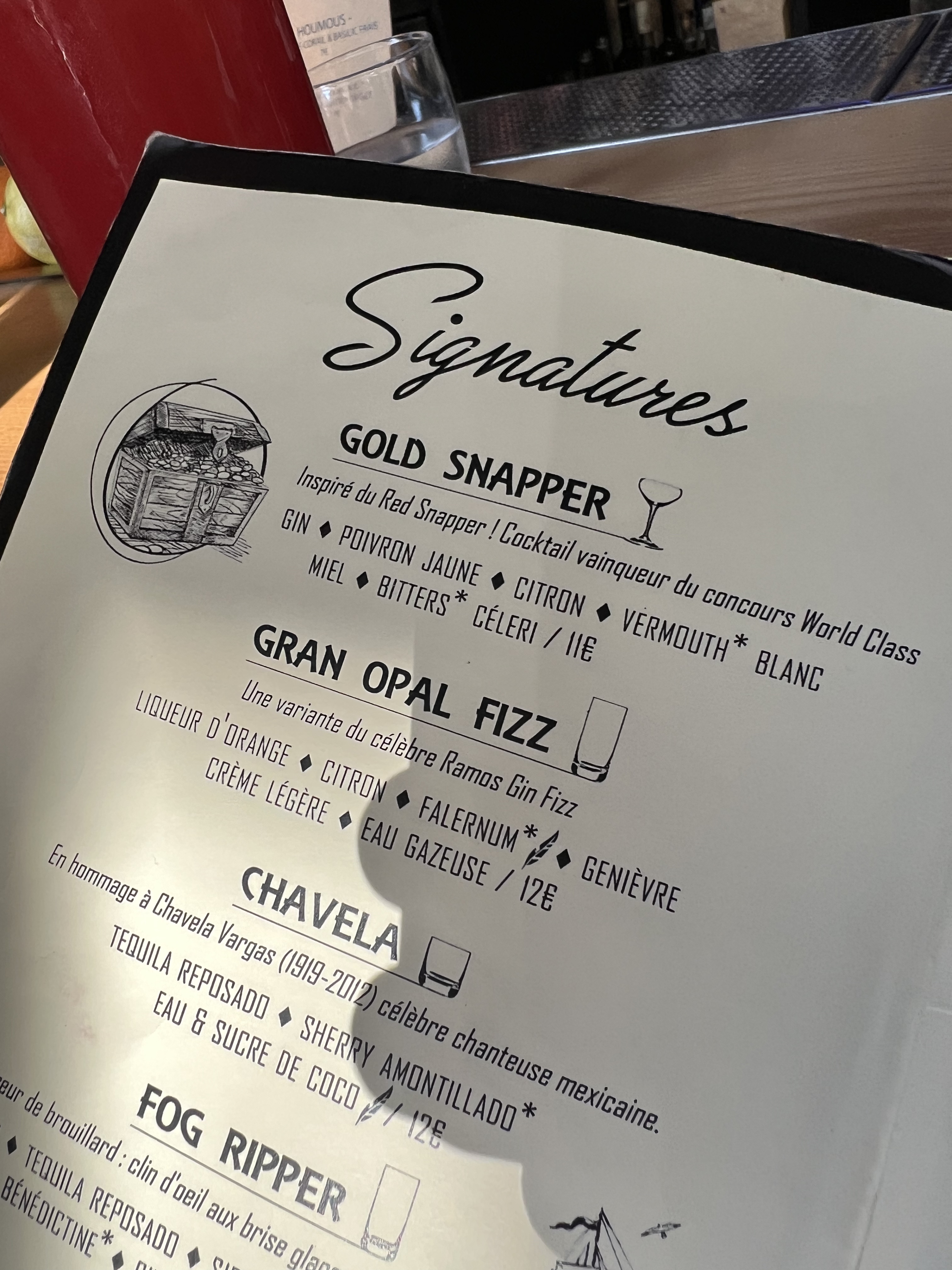 Une carte de cocktails impressionnante et diversifiée avec quelques tapas bien choisis pour accompagner tout ça. Vraiment chouette endroit pour passer un moment détente ensemble. En plus, les serveurs/gérants sont détentes et hyper agréables. Merci pour le moment les gars ! 👍🏽 On y retournera sans aucun doute.