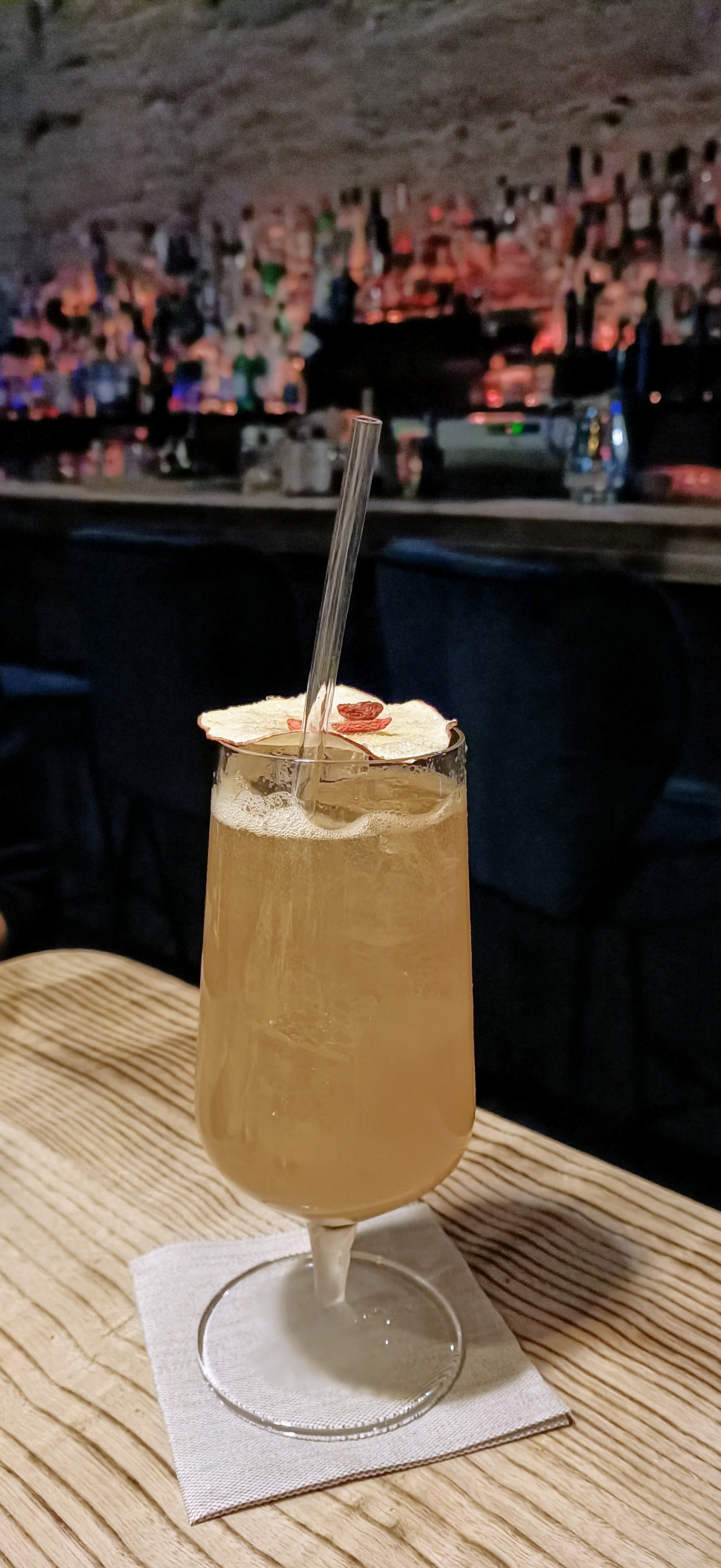 Accueil et personnel sympas. Cadre atypique et chaleureux avec un melange entre pierres à l’ancienne et modernité du mobilier. Un verre d’eau à la bergamote accompagne les verres de cocktails. Nous avons testé deux cocktails signature du bar, le Frontera et l’Apricot Collins, ils étaient très bons et bien présentés. On reviendra surement pour en tester d’autres.