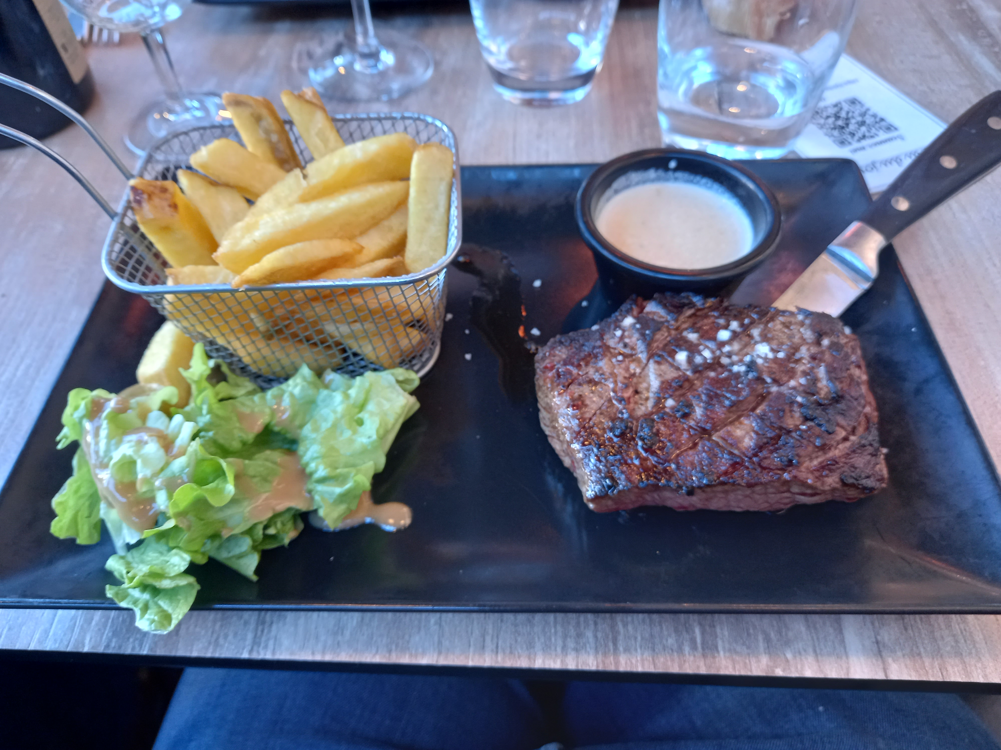Pour une première le midi, c'était très bien. Un repas fait maison à un prix abordable. La viande était parfaitement cuite et savoureuse avec ses frites fraîches. Le service impeccable. Je recommande et je vais tester la formule du soir avec les planches.