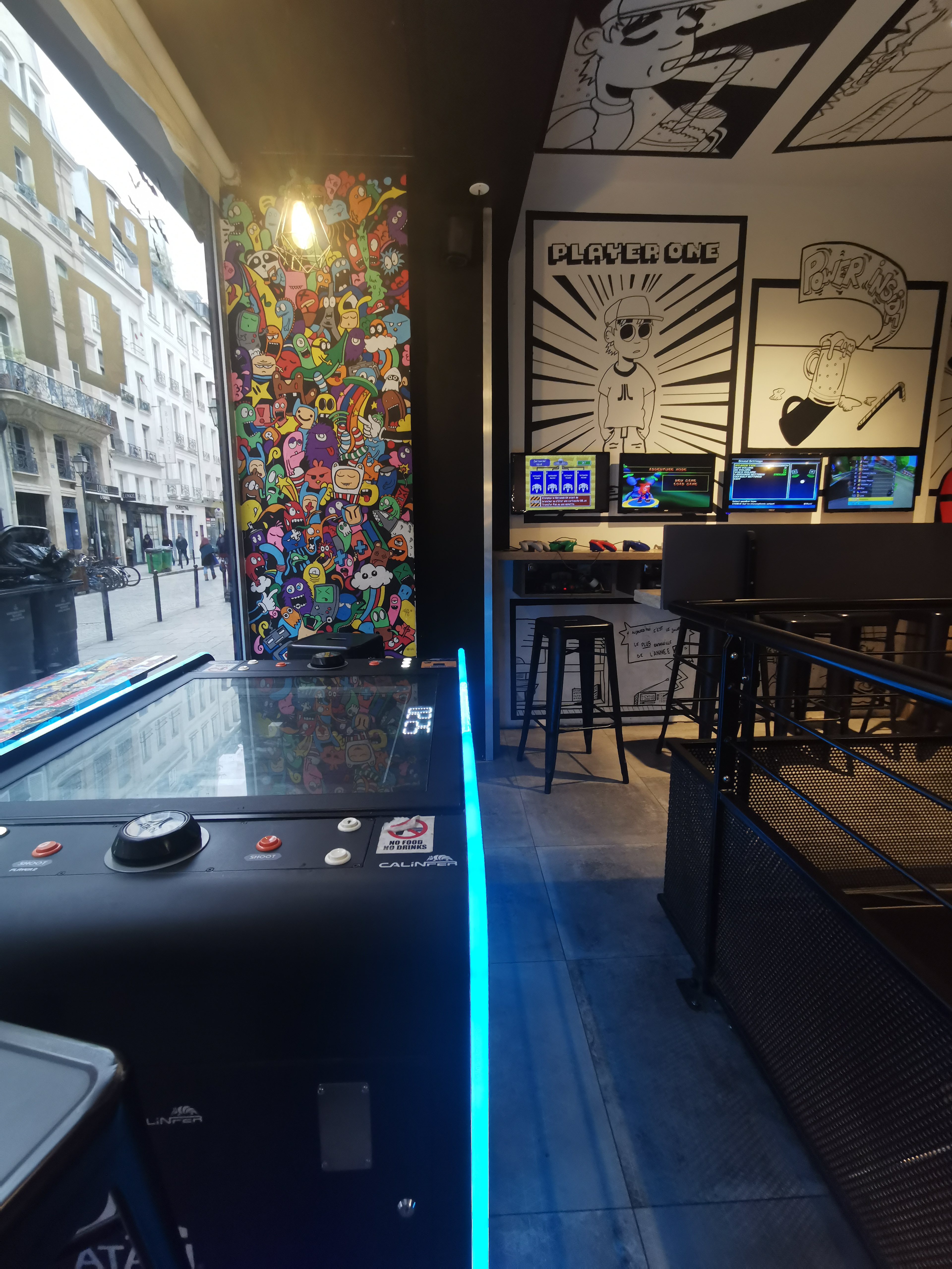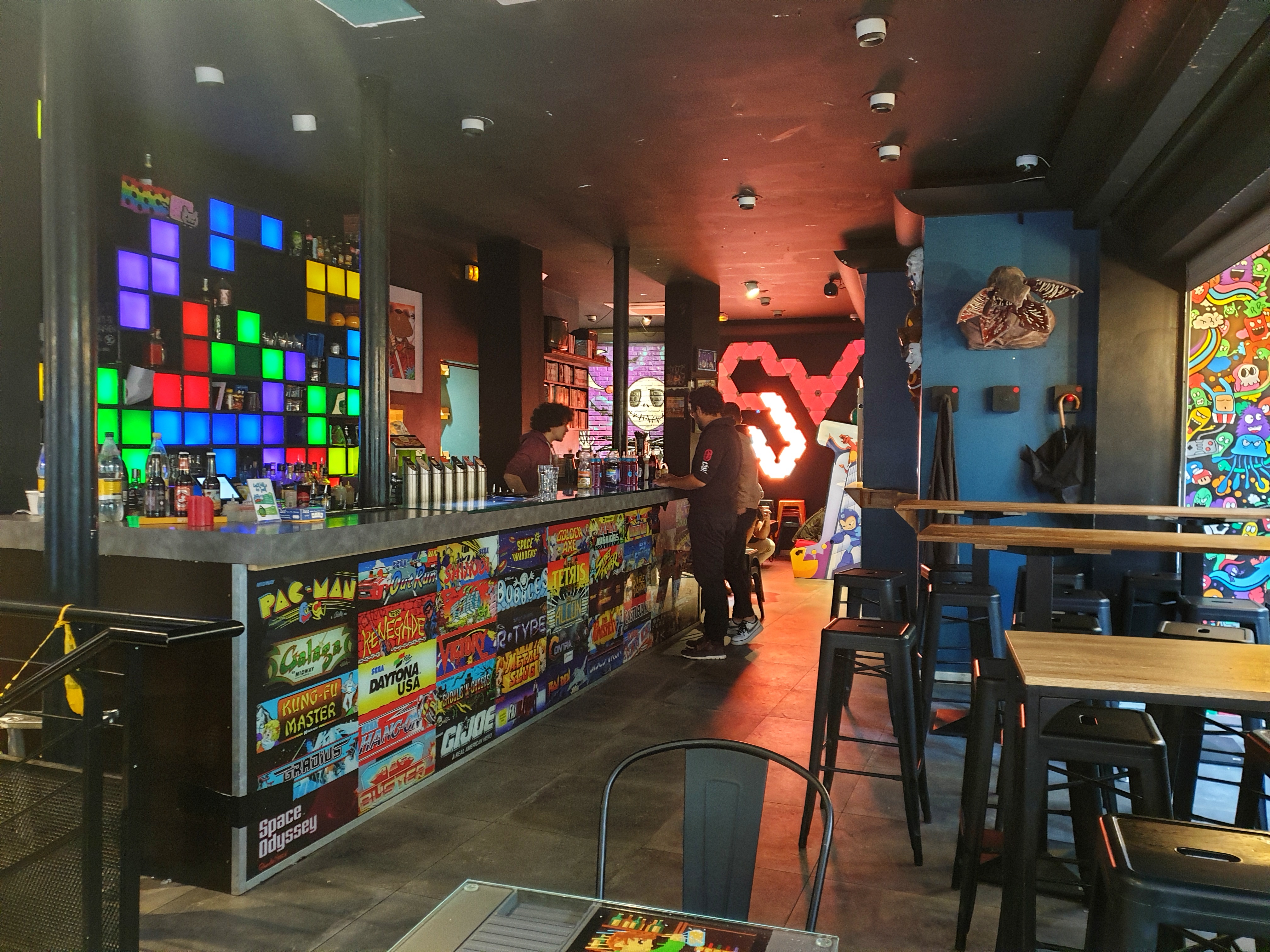 Déco EXCELLENTE et partout autour de vous: tous les jeux vidéos qu'ont connu la génération X (pac-man, Pong...) Large choix de bières mais aussi des cocktails avec ou sans alcool. Une très bonne adresse qui égaye le quartier! Mention spéciale au miroir hanté des toilettes (je vous laisse découvrir ! 😉)