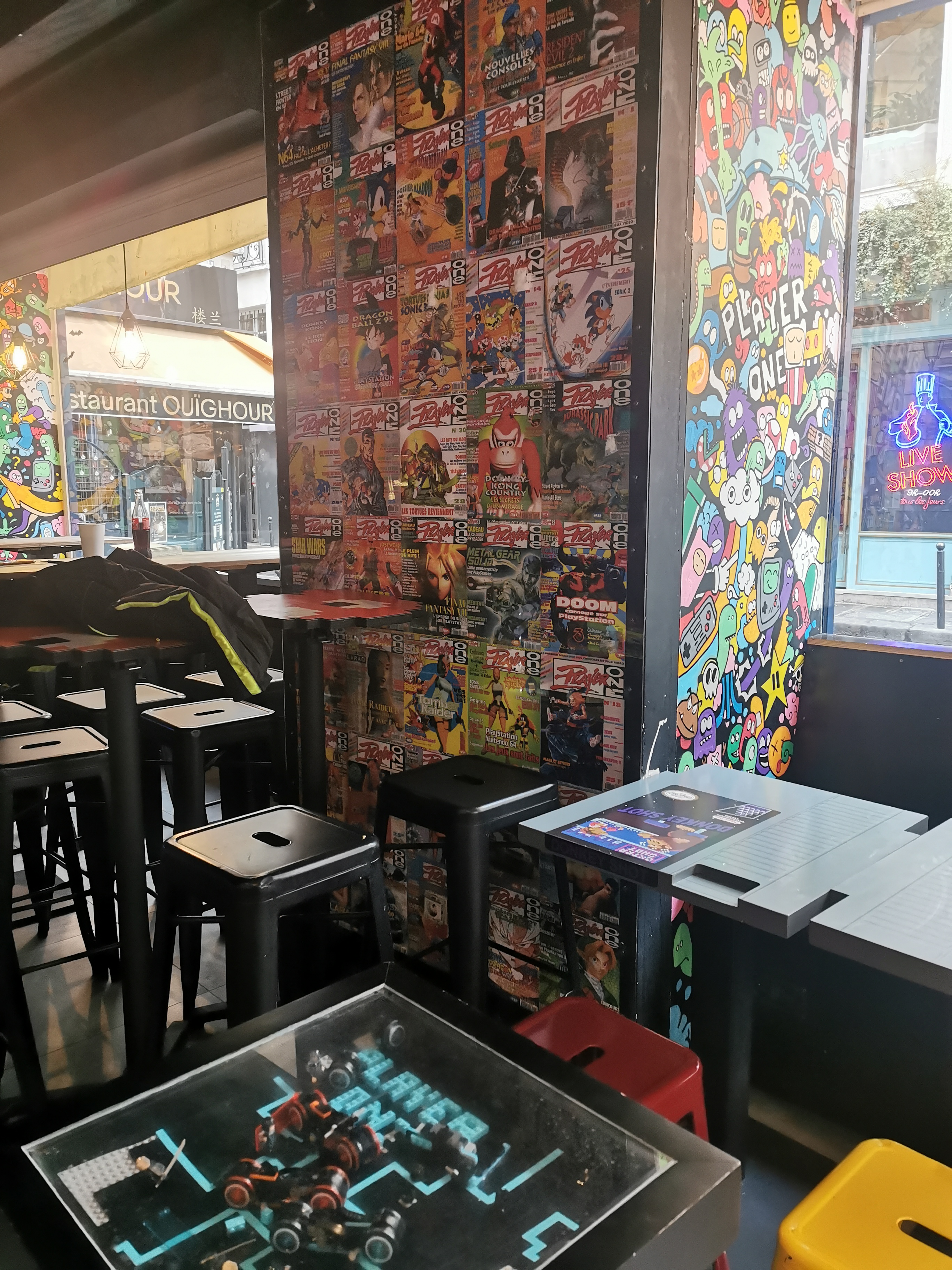 Superbe endroit, un de mes quartiers général ( jeux vidéo, bornes arcade, bonne musique , animations, jeux de société, superbe deco, système de fidélité mis en place avec un qrcode) Je le conseille à tout les geeks d'Ile de France mais ça m' est arrivé d'y aller et on ne me donne pas le ticket de caisse pour le système de point de fidélité. Je ne devrais pas le réclamer. Les serveurs sont moins sympathiques qu'au début. Il y a beaucoup de monde le week-end. A faire et refaire. Je reviendrais