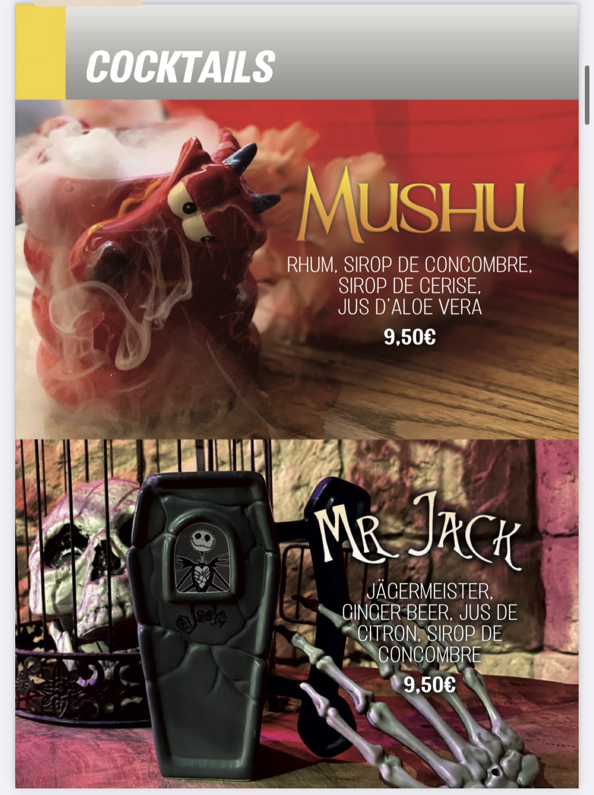 - ✔️ Cocktails et apéritifs