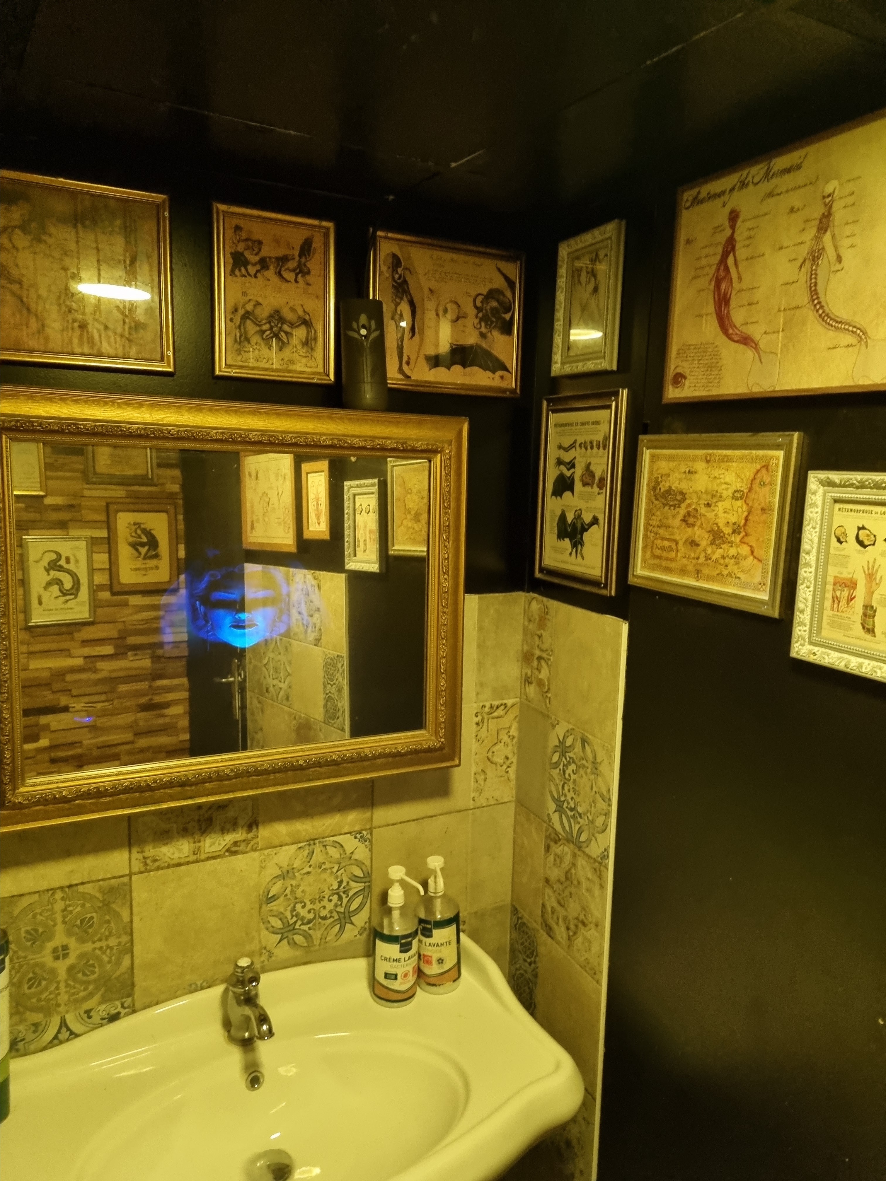 Je vais essayer de faire attention avec mes mots . Je fait rarement des avis sur internet . Arrivé le 04/05 vers 23h30 avec des potes fans de games et de Harry Potter . À l’arrivé ça a l’air super, à part toutes les tables vides et pleines de verres, la deco est vraiment sympa. Nous avons commandé un premier verre , et une de nos copines a trouvé un caffard à l’intérieur de son cocktail ( oui, un caffard noyé ). Elle a demandé un autre verre qui a été offert . La musique a commencé à augmenter , et même si le style est surprenant pour un bar de ce type , le problème c’était vraiment le bordel qui a commencé à s’instaurer . Je voulais commander plus de verres mais nous ne savions plus qui travaillait ou non dans le bar . J’ai vu environs 20 personnes entrer et sortir du bar en train de se servir . Ces mêmes personnes occupaient tout le espace supérieur du bar en train de courir , danser et crier . Je ne sais pas ce qui existe derrière le bar , mais toutes ces personnes avaient accès libre également .. On avait l’impression de déranger .. Des soupalins oubliés sur les chaises..le toilette juste inutilisable car trop sale.. J’ai de la peine pour ce patron qui a créé un bar aussi sympa mais que n’a pas l’air d’avoir trouvé des personnes responsables pour s’en occuper . Il doit également perdre énormément de chiffre d’affaire avec toutes ces personnes qui consomment mais ne paient pas.. Enfin.. je ne retournerai ni recommanderai pas.. ça a gâché notre fin de soirée .