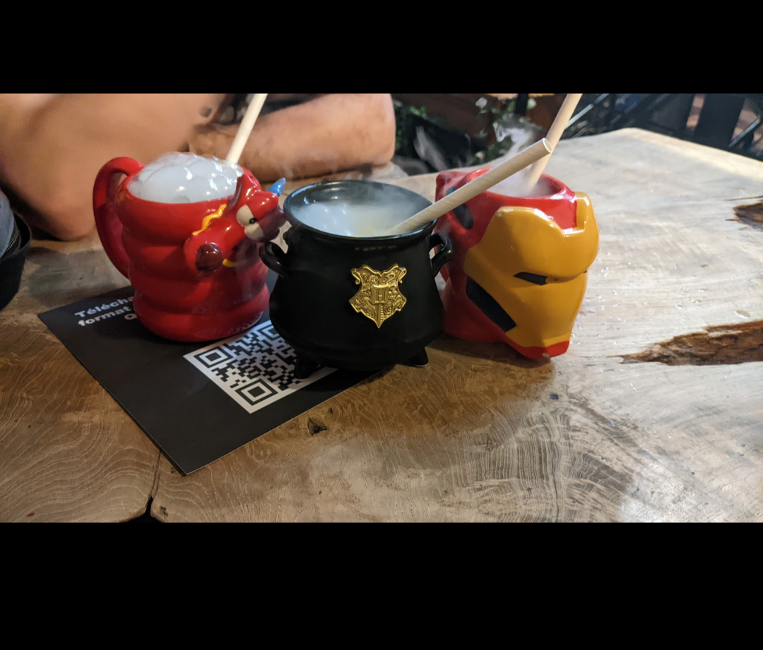 Super déco et très bon cocktail J'ai essayer le polynectar, la belle et la bête et le Hulk Le hulk est assez fort mais sinon les 2 autre sont excellent bien préparé avec de la gueule