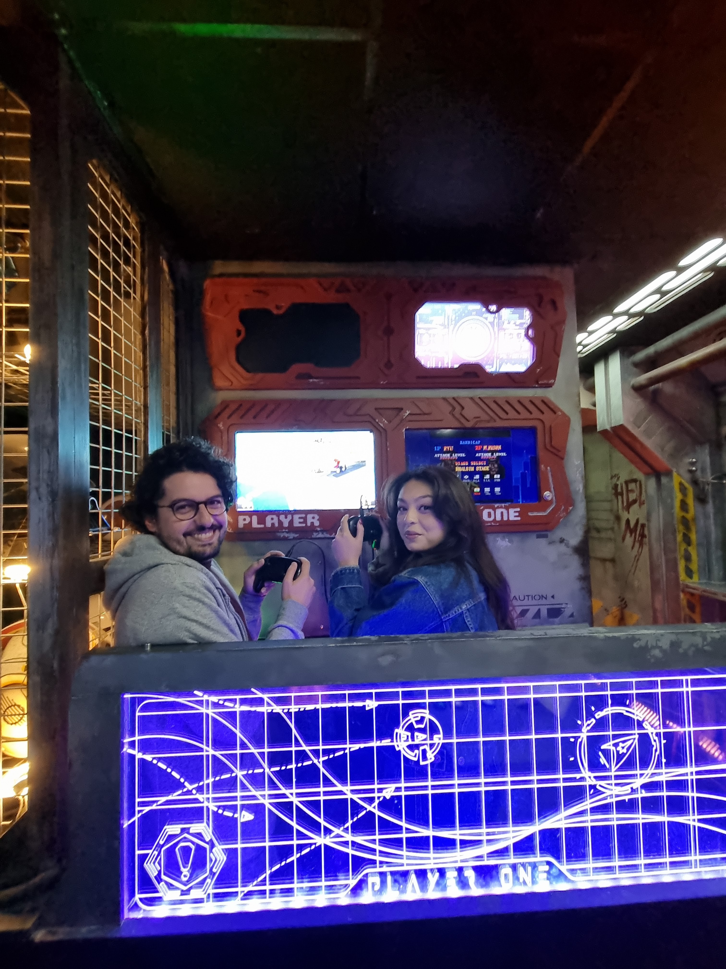 Player One porte bien son nom ! Le lieu est vraiment impressionnant tant il est immersif par ses différents décors. Dans la théorie... Passons au pratique, ce qui est dérangeant c'est le manque d'expérience/maîtrise du lieu qui semble avoir été construit pas une bande de potes sans réelle formation. Donc c'est cool on s'y amuse bien, on passe un bon moment, il y a des clins d'œil partout, mais les cocktails sont vraiment dégueulasses, il y a très peu voir rien à manger et au niveau du nettoyage c'est repoussant. Les manettes sont poisseuses, certaines ne marchent pas, enfin bref ça manque terriblement d'entretien. Bravo quand même pour le travail effectué ! @LVS.kid