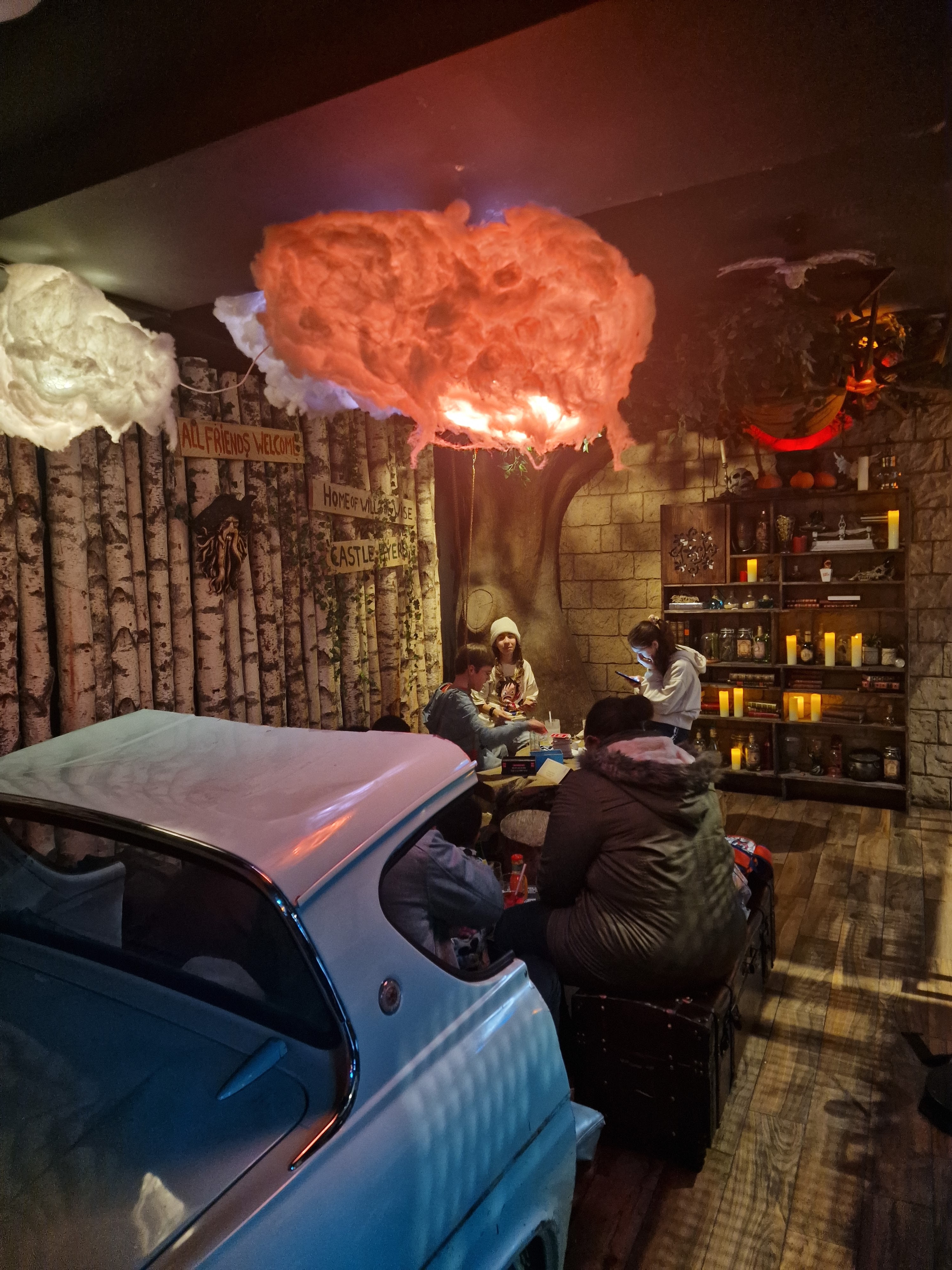 Quel bar amusant !!!! Vous entrez et c’est comme si vous aviez été transporté dans un univers différent ! L'ambiance et les décorations sont incroyables ! Tant de jeux amusants à jouer avec vous et votre groupe ! J'aurais aimé savoir avant d'arriver que j'aurais pu réserver du Quidditch Pong haha ! Les boissons sont extraordinaires et notre expérience a été magique