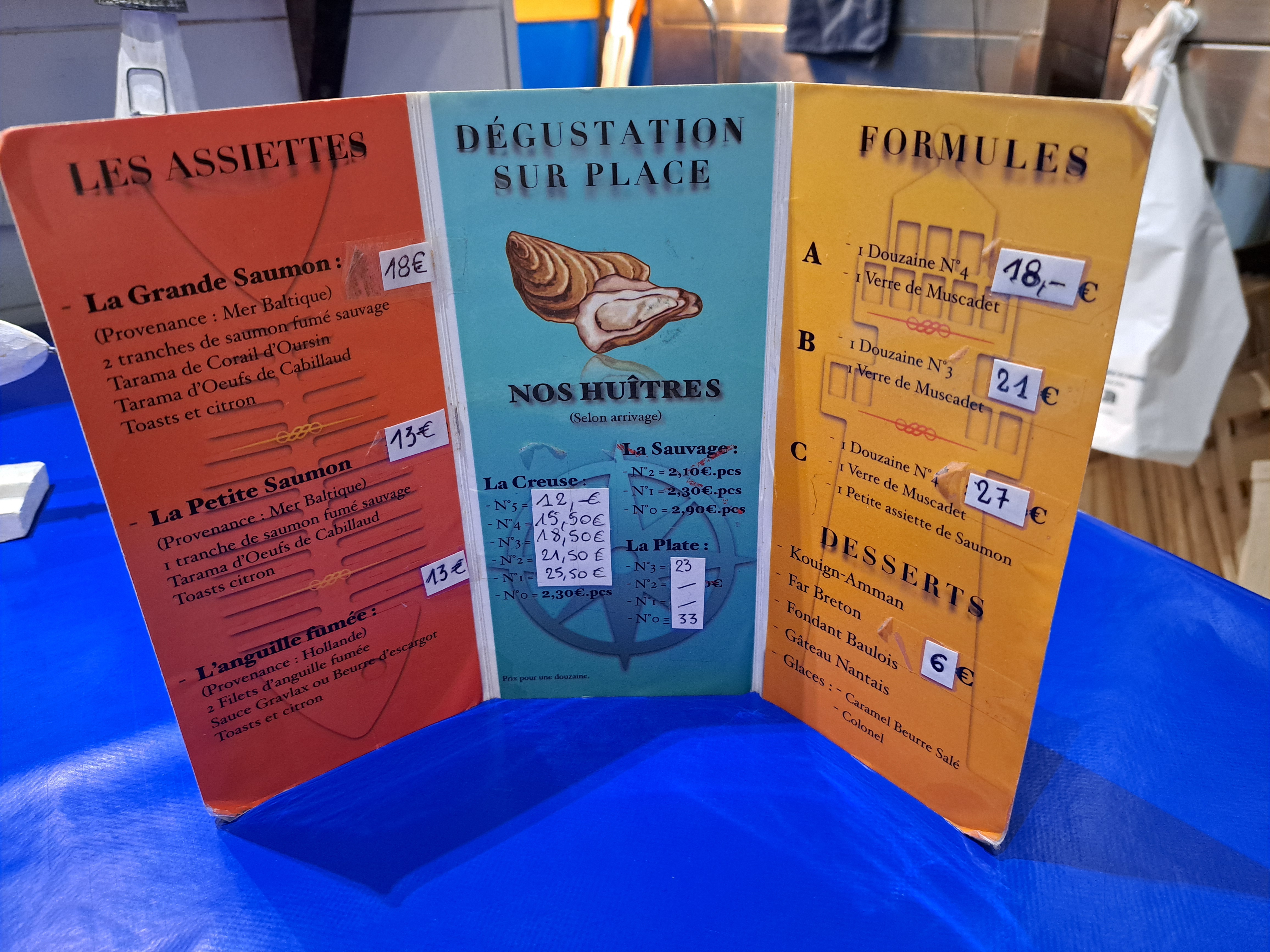 Accueil chaleureux ! Huîtres, poisson fumé, desserts bretons bref... l’essentiel !!! Super frais, super bon ! Rapport qualité prix exceptionnel ! Je recommande 👍👍👍
