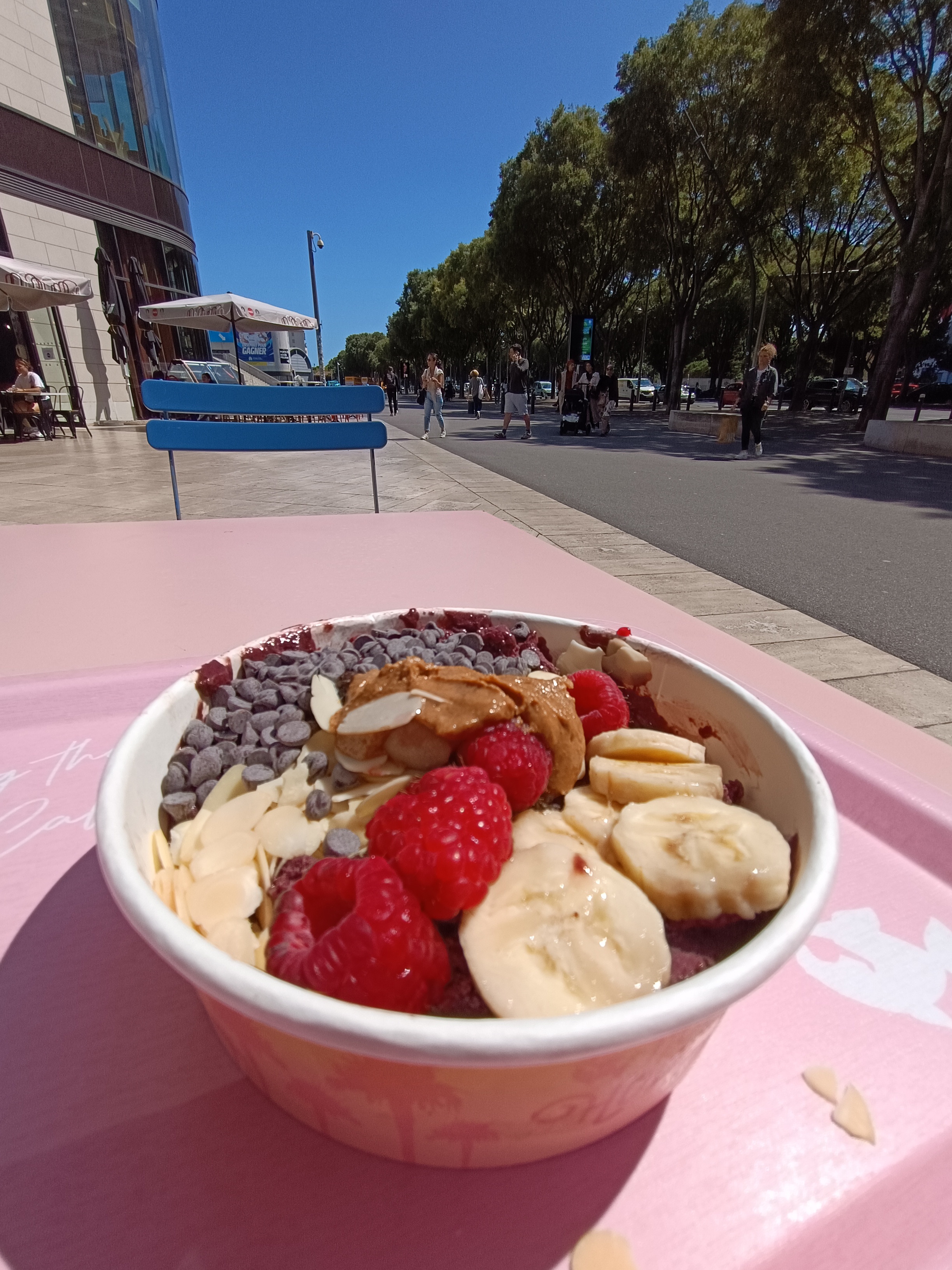 j'ai pris un açaï(salade de fruit) quand j'ai ouvert la boîte il n'y avait ni fraise ni banane ni miel rien avoir avec la carte et en plus c'est cher