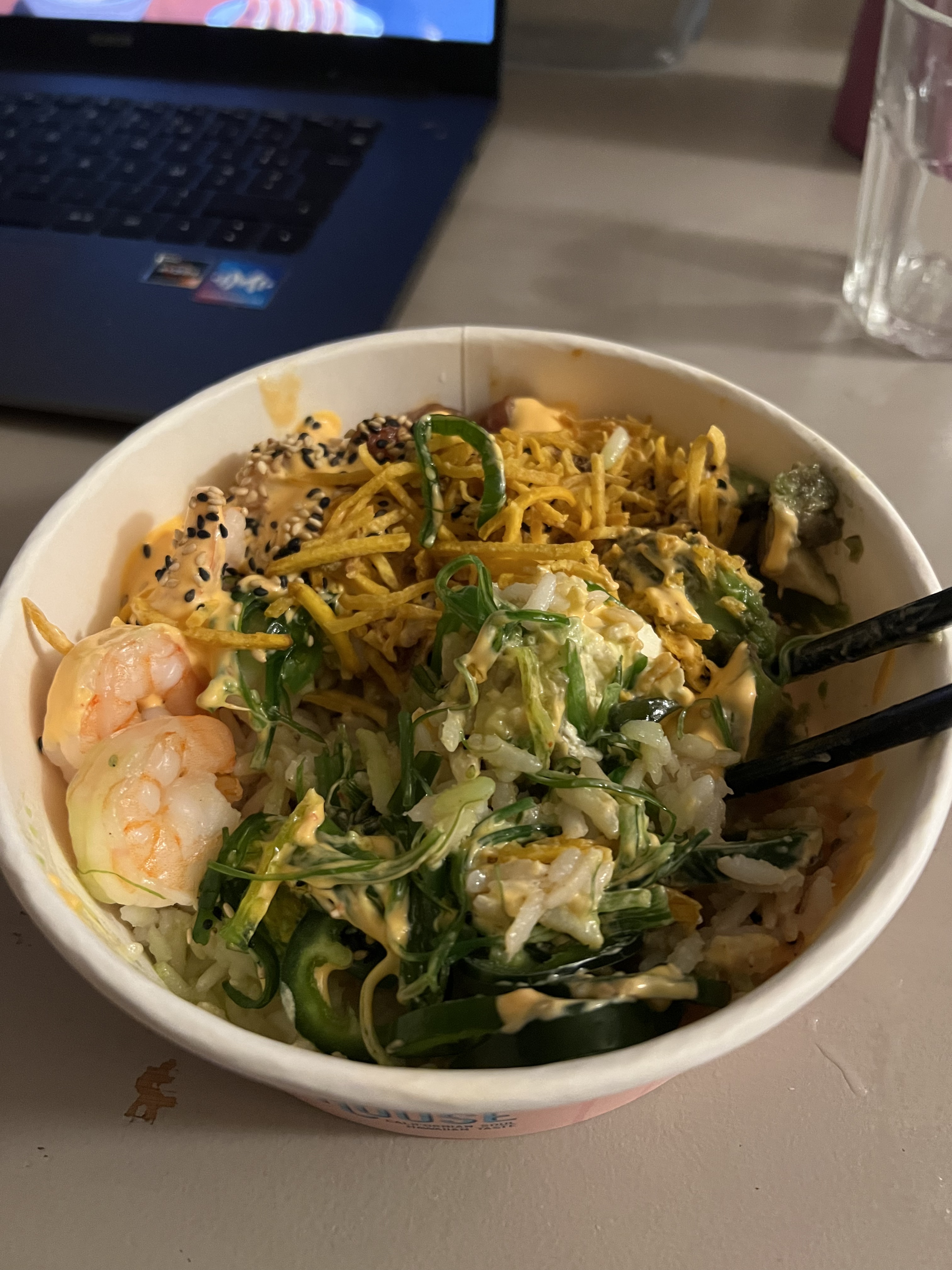 Extrêmement déçu on dirai que mon poké a été fait par un enfant de 5 ans, le bowl et même pas rempli on peut clairement compter les ingrédients qu’il y a dessus, gros doute sur la fraîcheur des produits je recommande pas