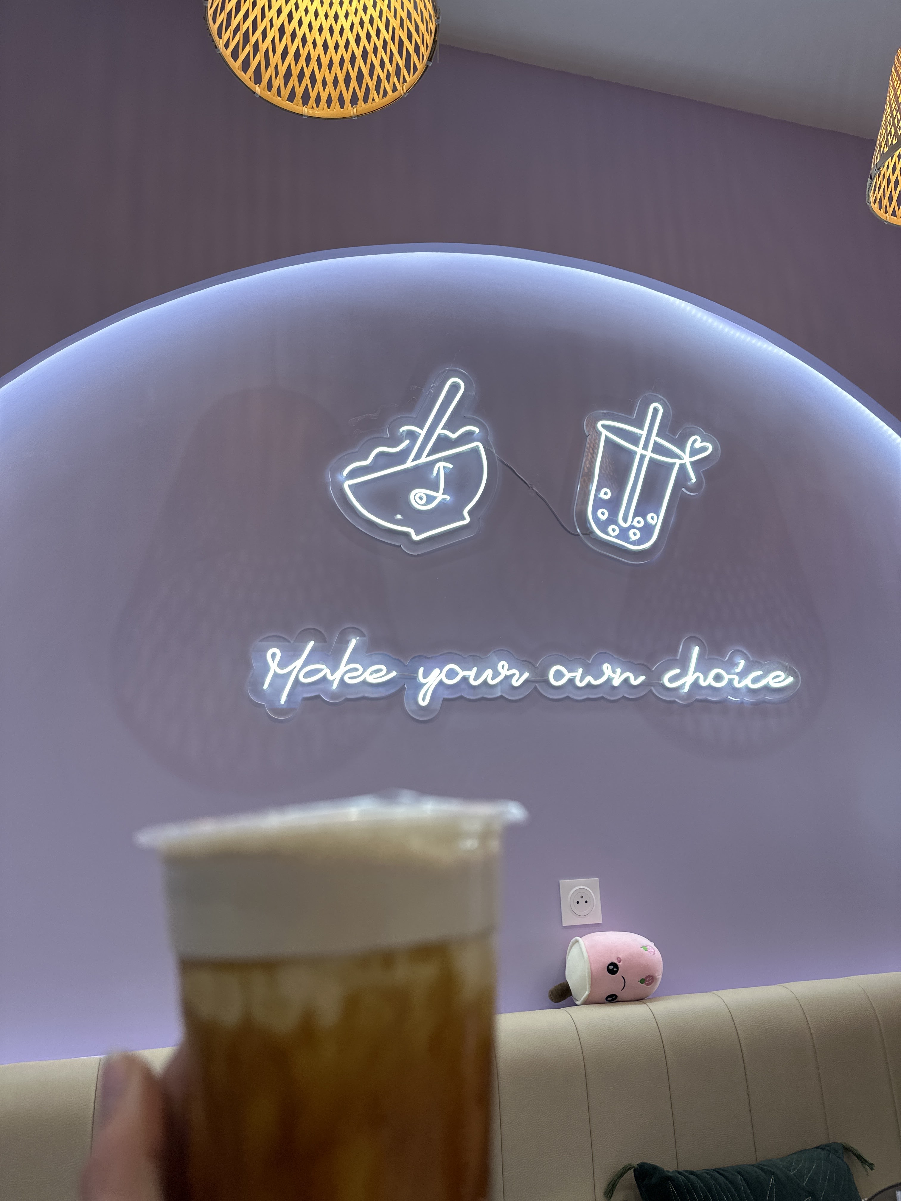Lieu très accueillent magnifique décoration personnels très gentils. Il y a beaucoup de billes dans les bubble tea personnellement j’adore ça.les cookies sont délicieux, et il y a beaucoup de choix