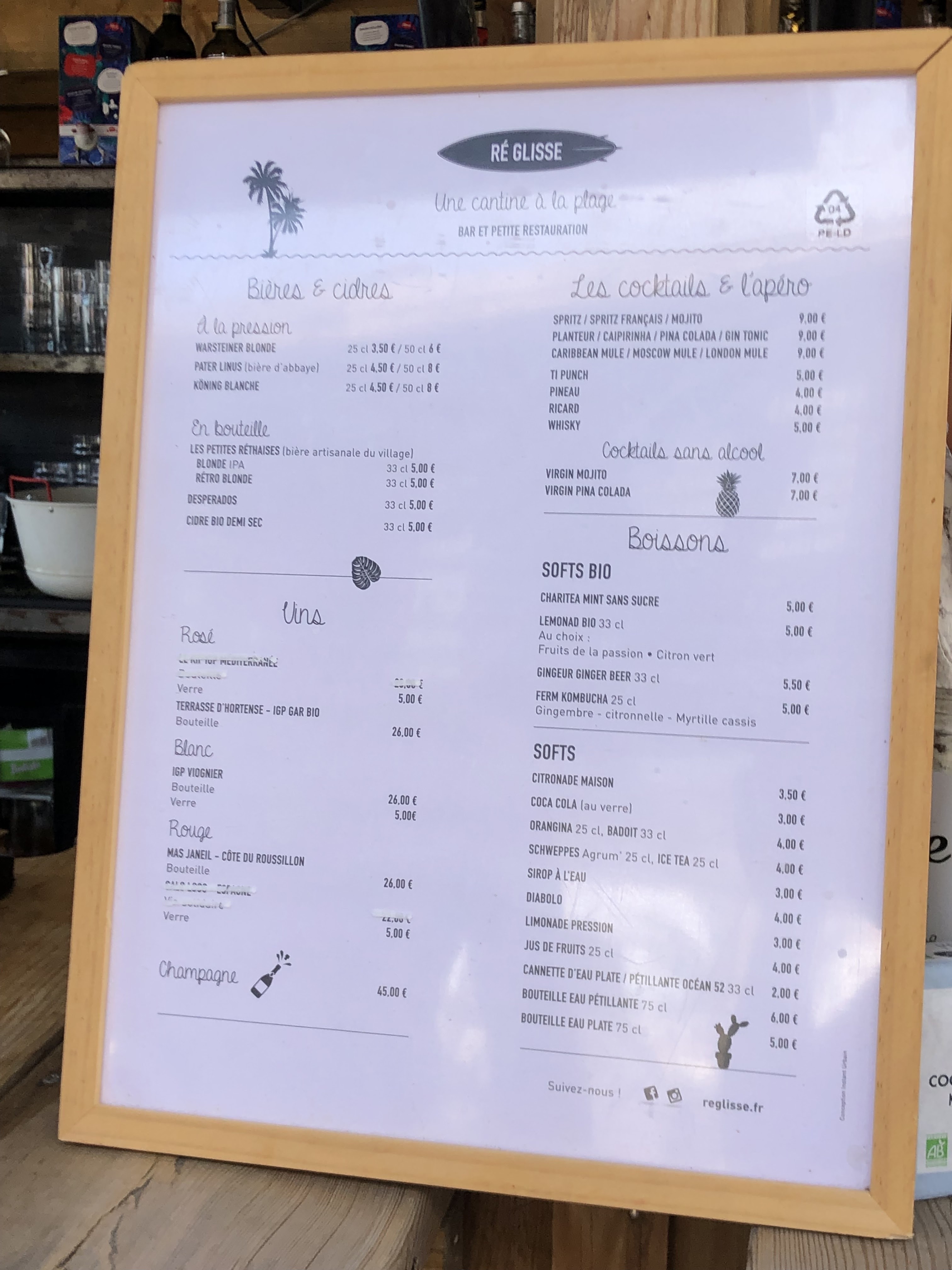 Ré-Glisse est un bar très sympa idéalement situé sur la plage de l'île de Ré. Bien pratique pour boire une verre à l'ombre avec la vue sur l'océan. Le service se fait au bar. Les pina colada sont bonnes. Moins enjoué sur le gin tonic. Possibilité d'acheter un t-shirt, sweat ou des accessoires Ré-Glisse.