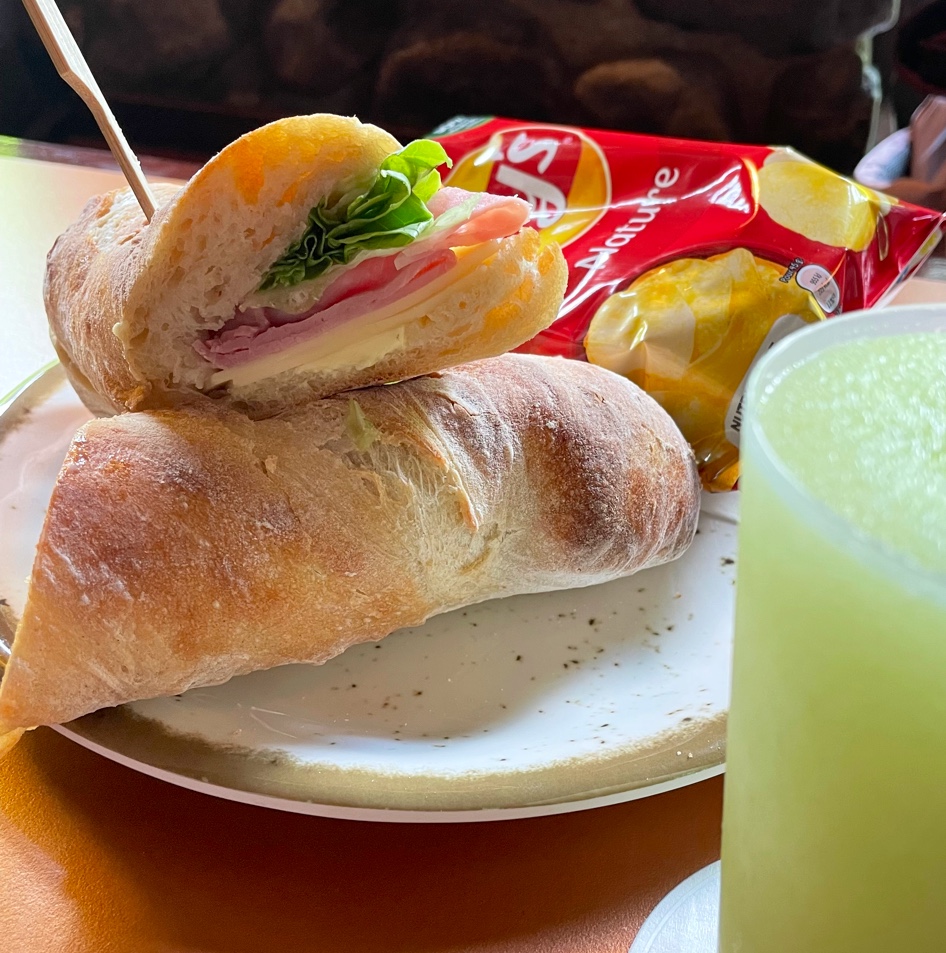 Un magnifique bar avec un cadre et une ambiance magnifique avec une cheminée qui l'hiver doit faire une ambiance chaleureuse et magique, un personnel gentil doux et très souriant franchement j'adore hâte d'y retourner et puis alors des sandwich absolument délicieux et copieux