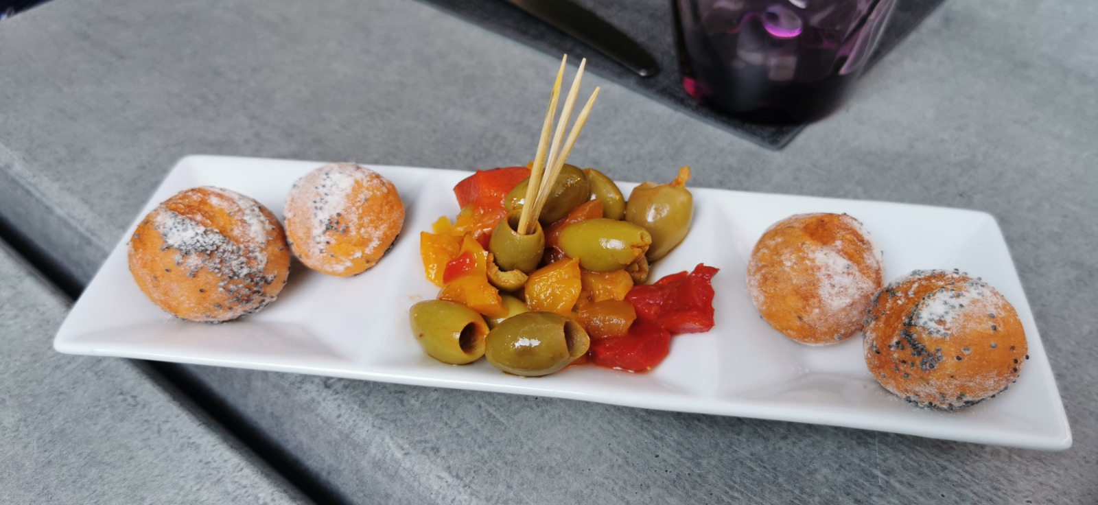 Nous avons déjeuné à 10 personnes dans la cour ombragée, Nous avons été chaleureusement accueillis et même si de nombreux autres invités étaient présents, tout s'est déroulé sans problème mais rapidement. Le repas quotidien et les menus étaient excellents en goût et présentés de manière décorative. Tout le monde était servi en même temps et la facturation pouvait même se faire séparément pour chaque couple. Merci également pour l'ambiance cosy.