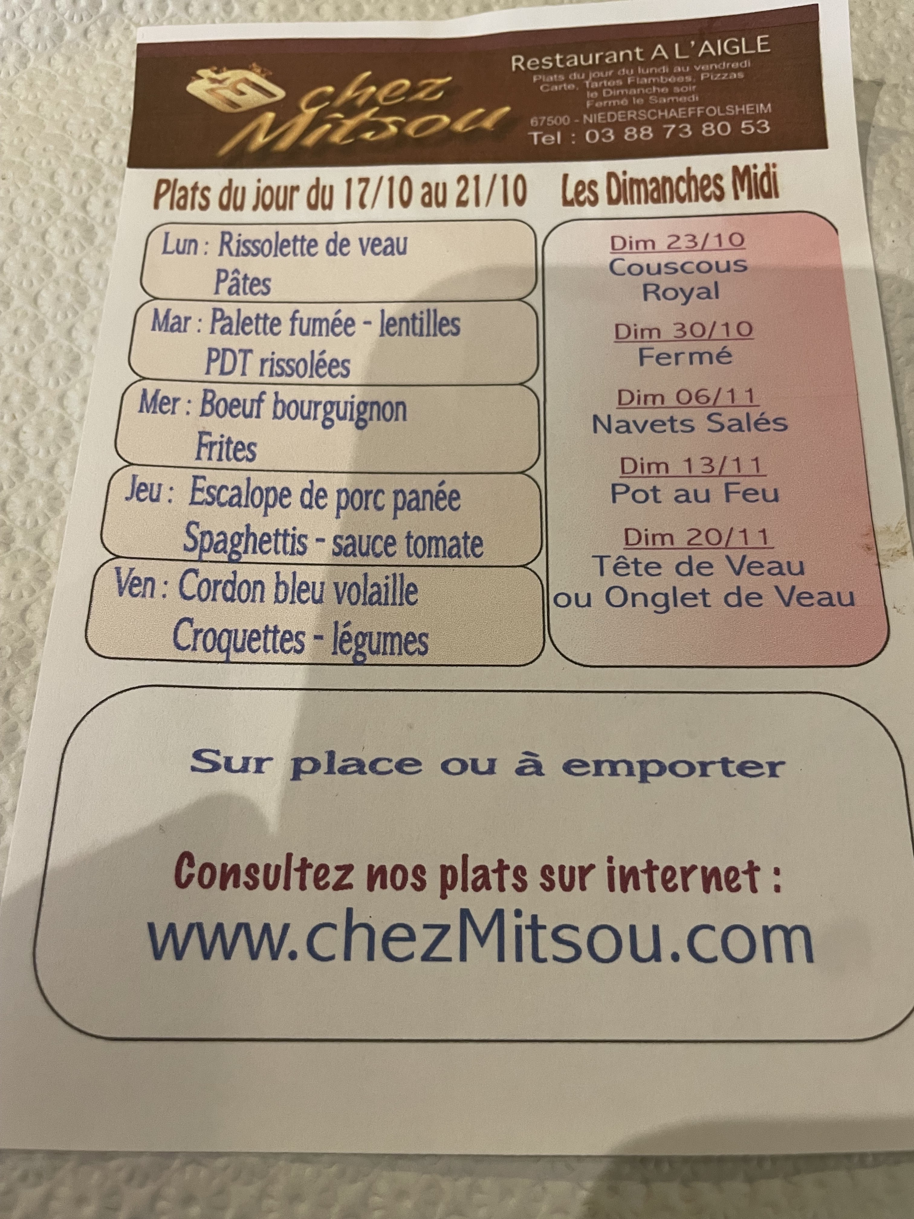 Les menus du dimanche excellent et le personnel sympathique.