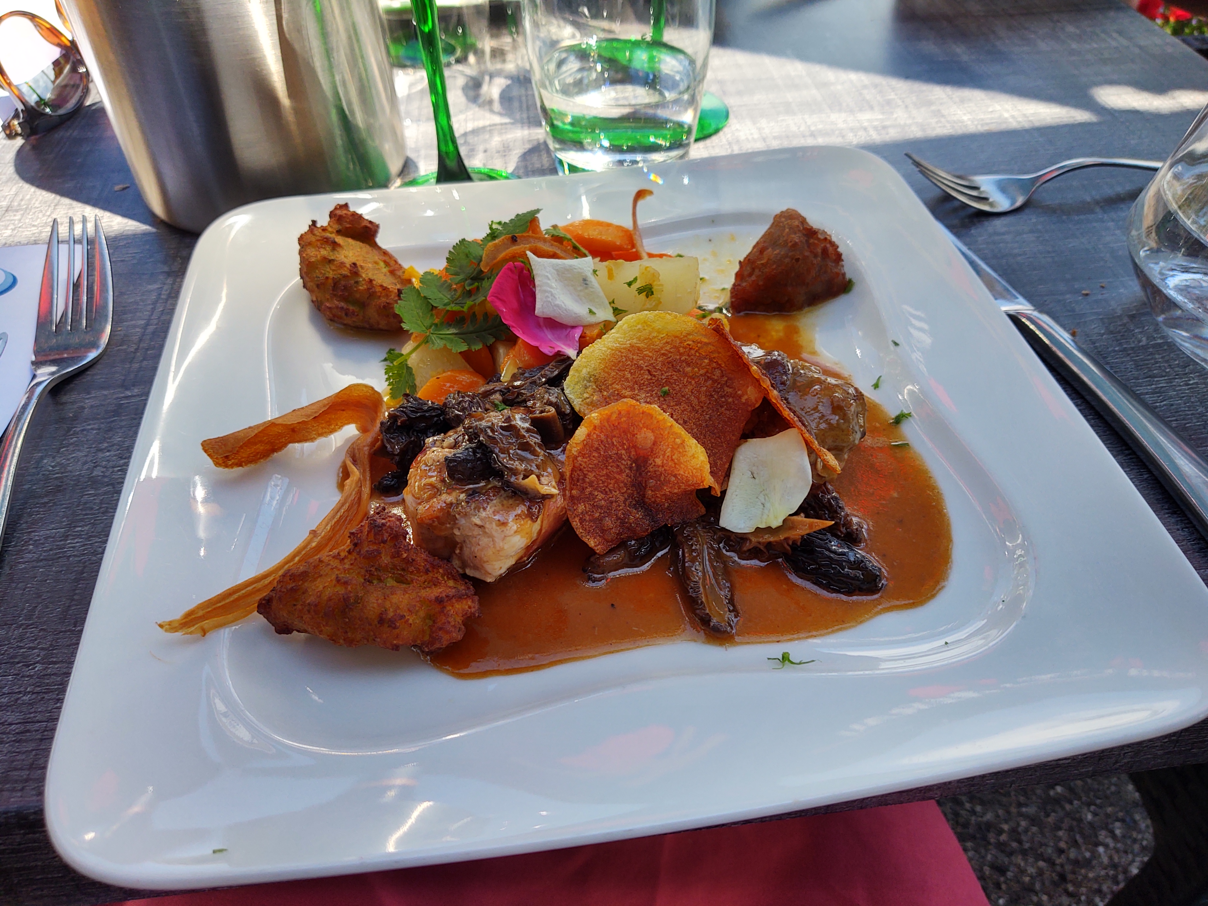 Cuisine très bien .cependant le restaurant est dans un caveau très sombre sans fenêtre. La terrasse doit être top mais n était pas ouverte vu la météo.service impeccable.