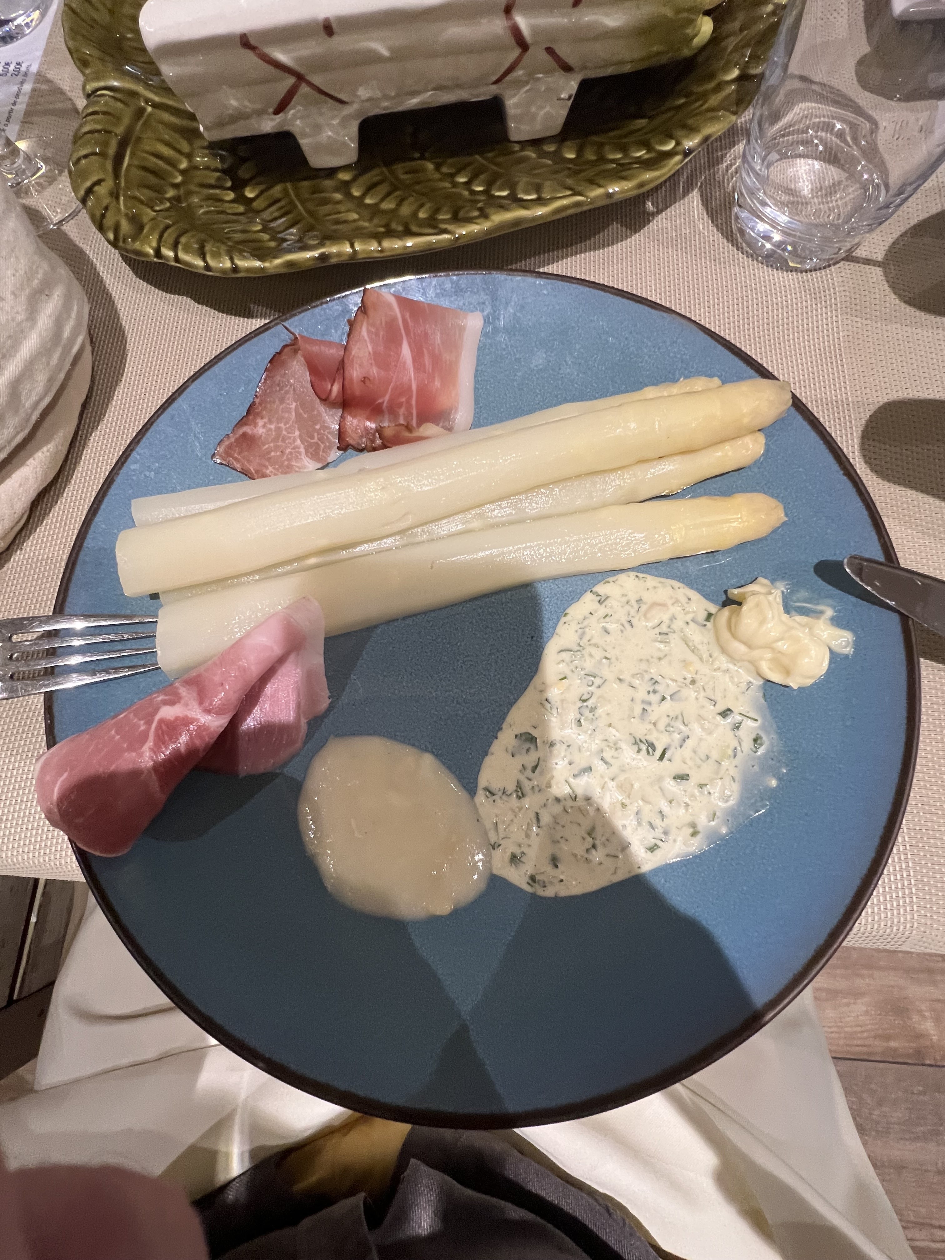Personnellement en voyant le prix du plat d'asperges je ne serais pas rentrée dans ce restaurant. Je trouvais le plat très cher, certes c'était bien servi et très bon. J'ai pris un jarret qui était excellent parfaitement cuit et fondant. Nous avons passé un bon moment tout était parfait.