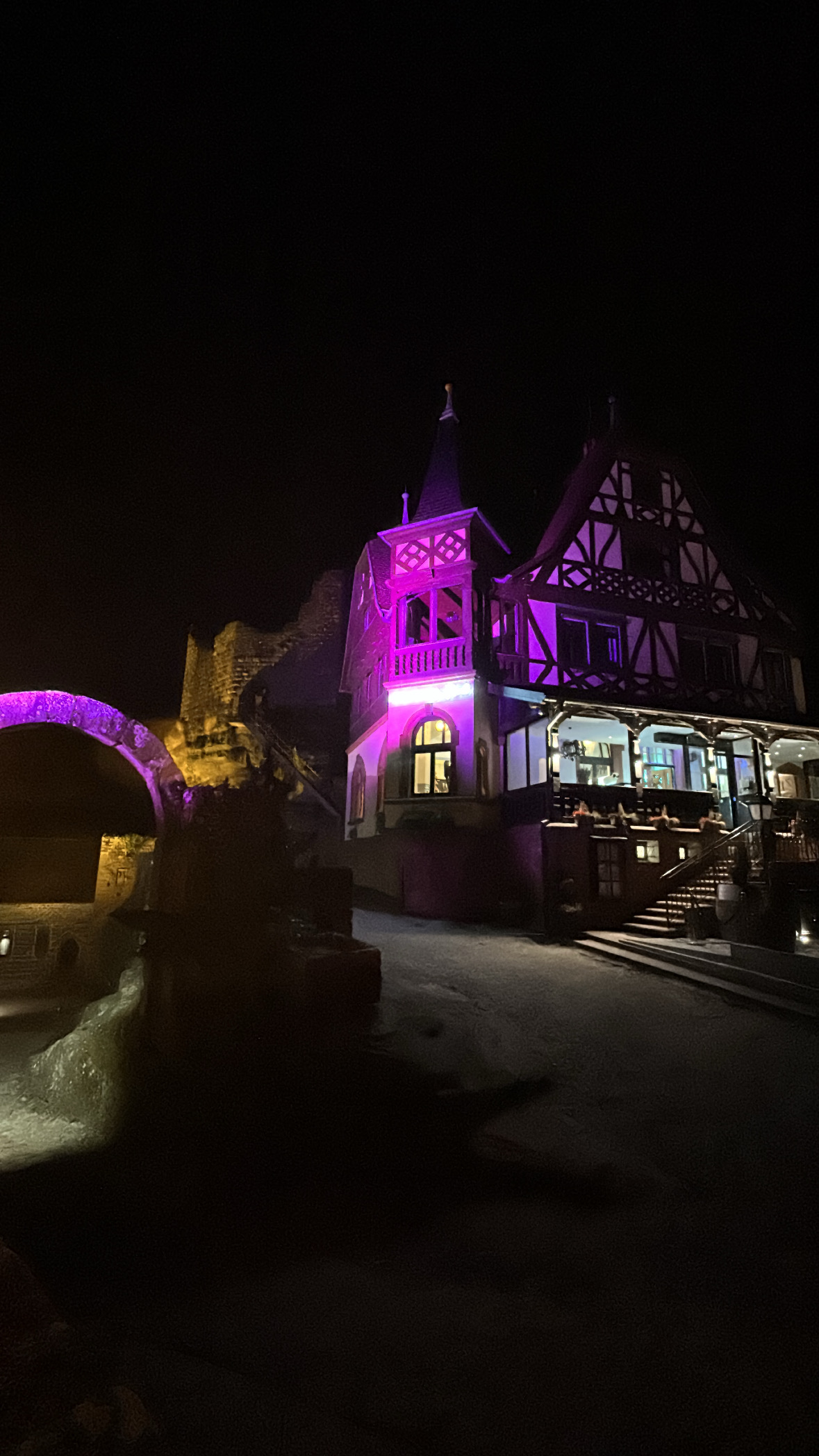 Superbe Cadre perché tout là haut dans les ruines du château, balade et vue imprenable. Service efficace et rapide. Personnel attentif et très efficace. Réservation recommandée si en groupe. Choix de spécialités, tarte flambée délicieuse...très belle découverte. Y revenir c'est sûr.