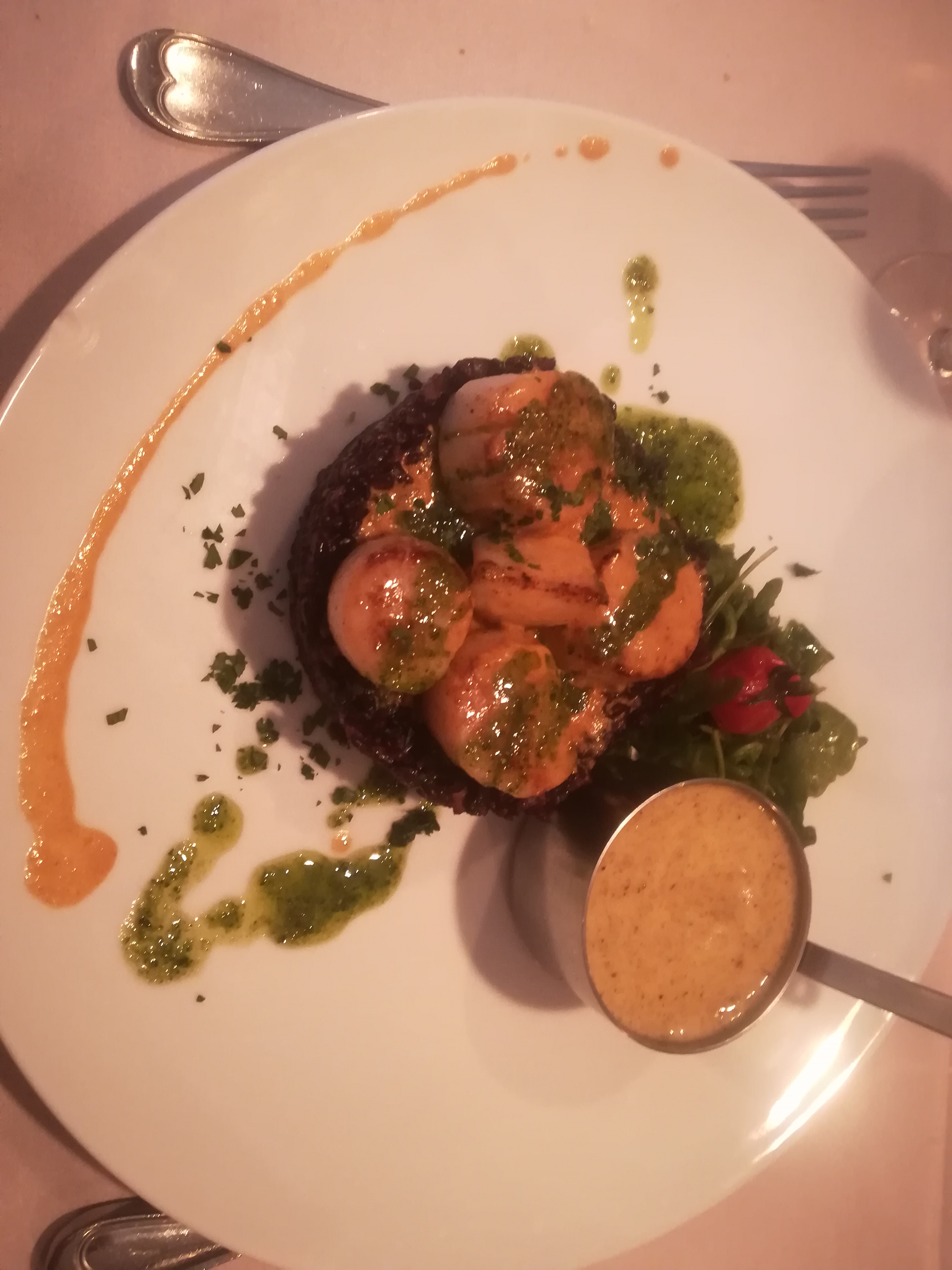 Risotto aux légumes délicieux ! Mais malheureusement l'entrecôte de boeuf à 23€ extrêmement grasse, presque immangeable donc seulement 3*