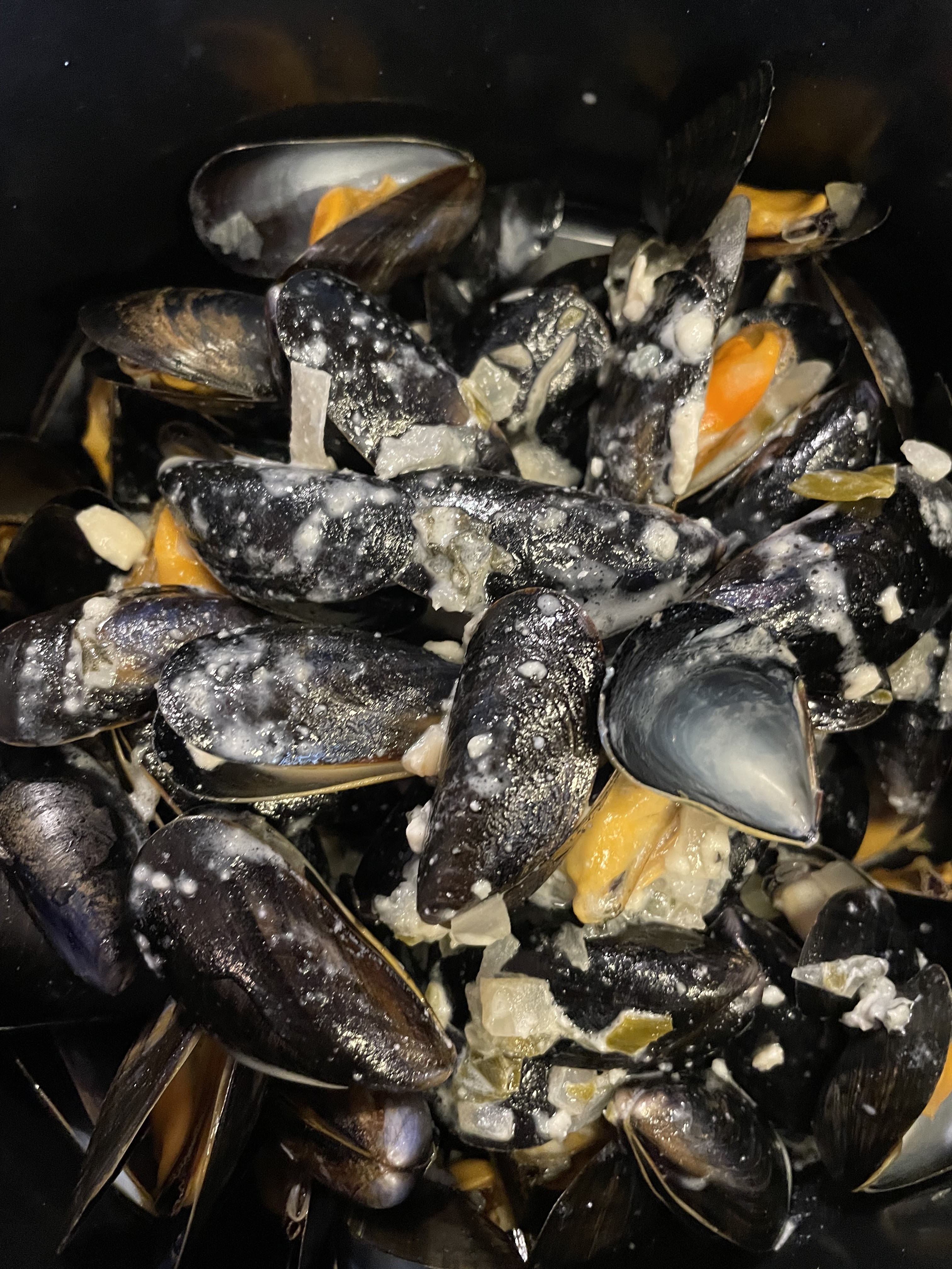 Moules frites au bleu, impeccable vrai bleu ,sauce suffisante et vrai frites bien cuites .pain de qualité