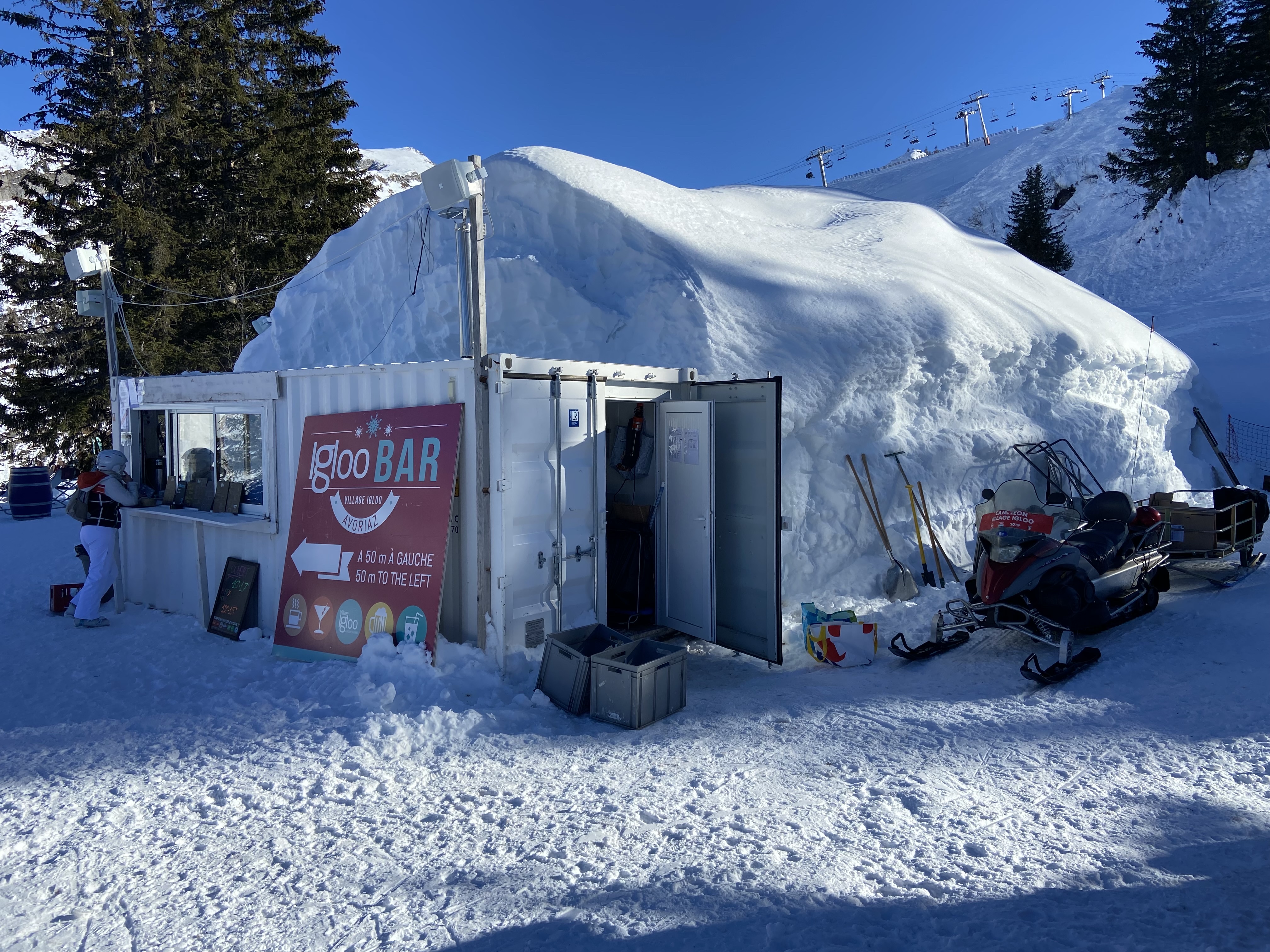 Très chouette bar dans un igloo avec une vue imprenable sur Avoriaz. Tarif sympa.