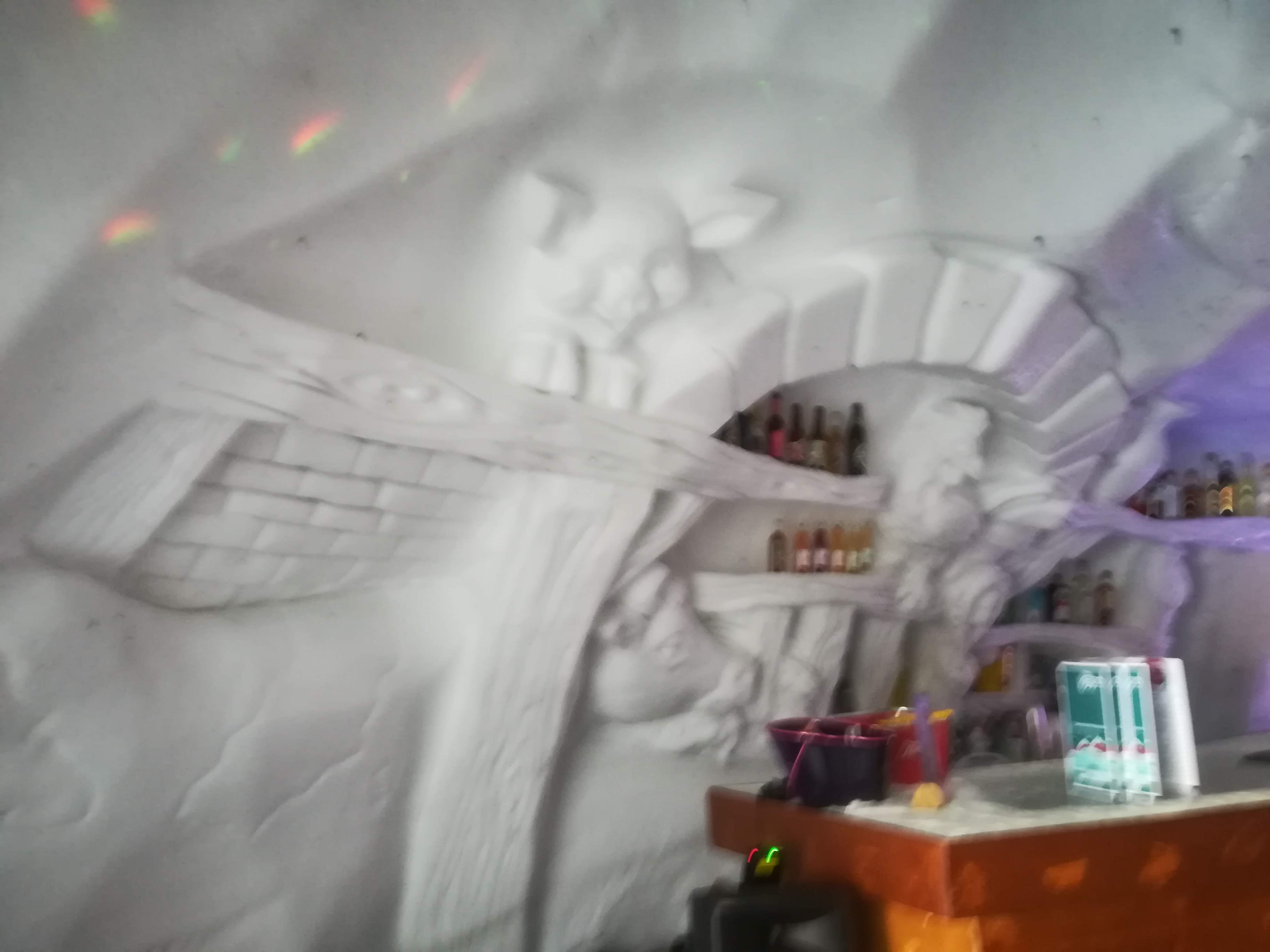 Un joli but de promenade pour les marcheurs. L'igloo est magnifiquement agrémenté de sculptures taillées dans la glace..Très bon accueil du barmaid
