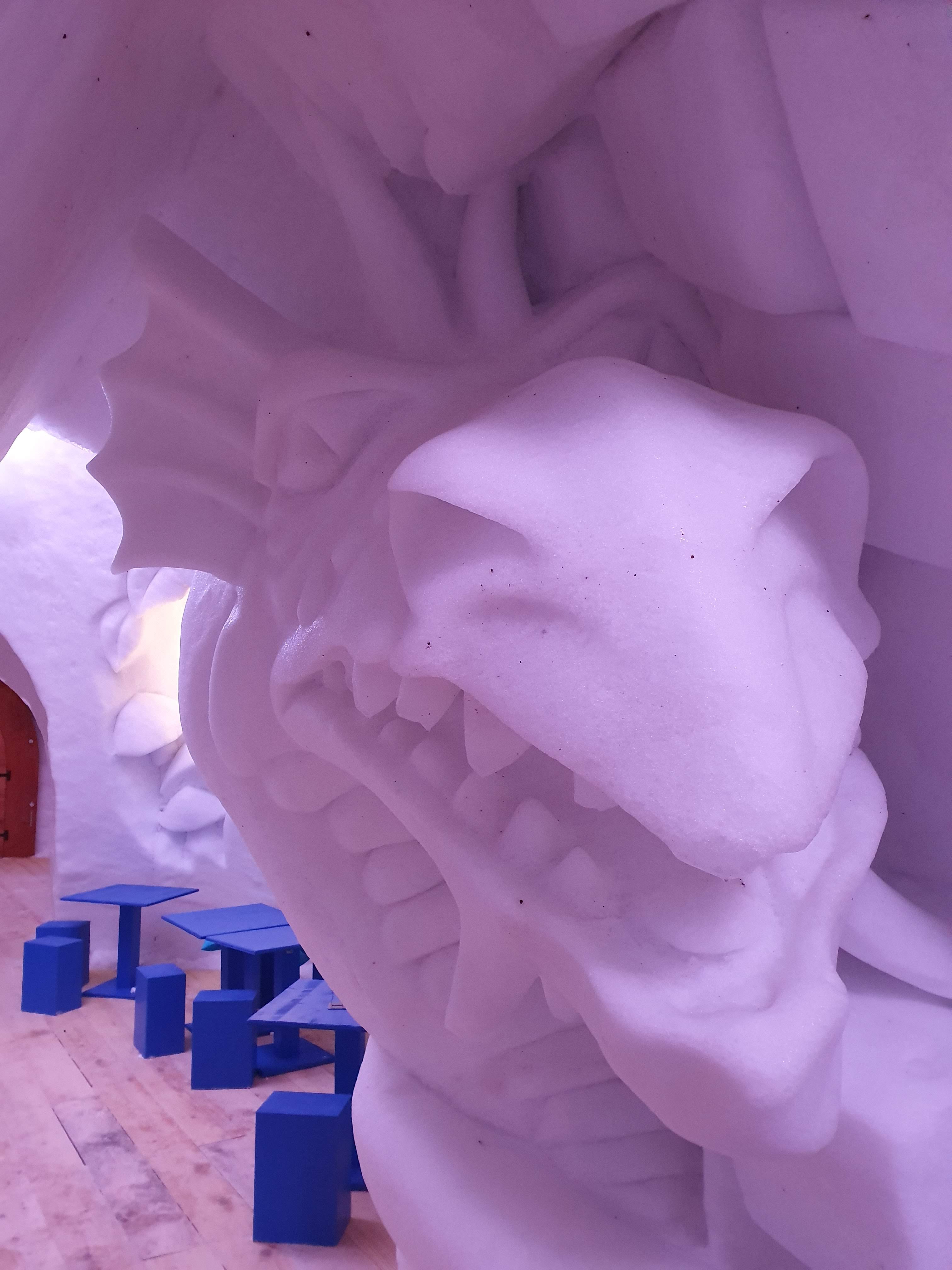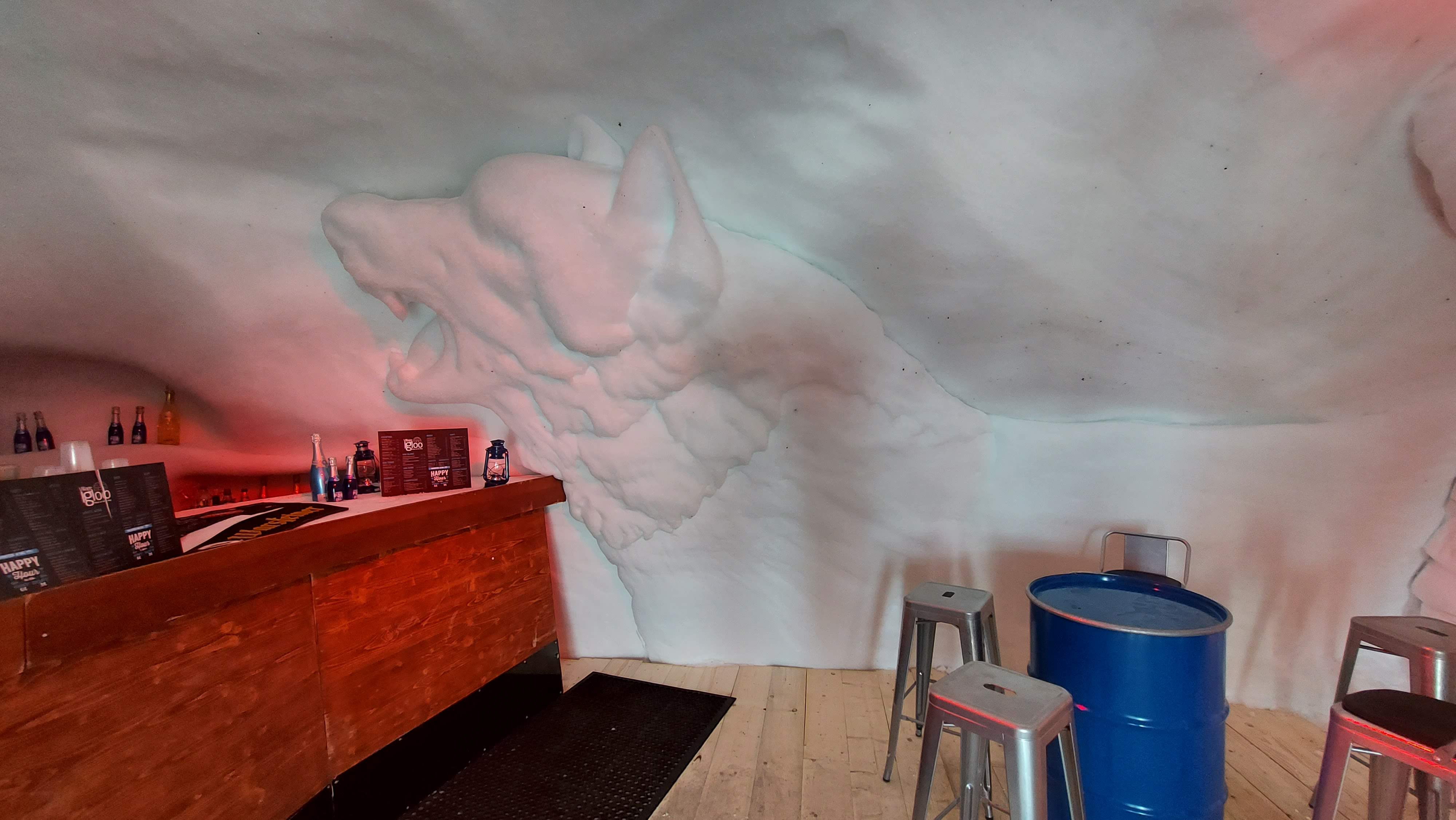 Que vous souhaitiez boire un chocolat chaud, une bière ou tout simplement faire une pause, passez par l’igloo bar pour découvrir la travail incroyable de la sculpture sur glace. C’est majestueux ! Et chaque année le thème est différent.