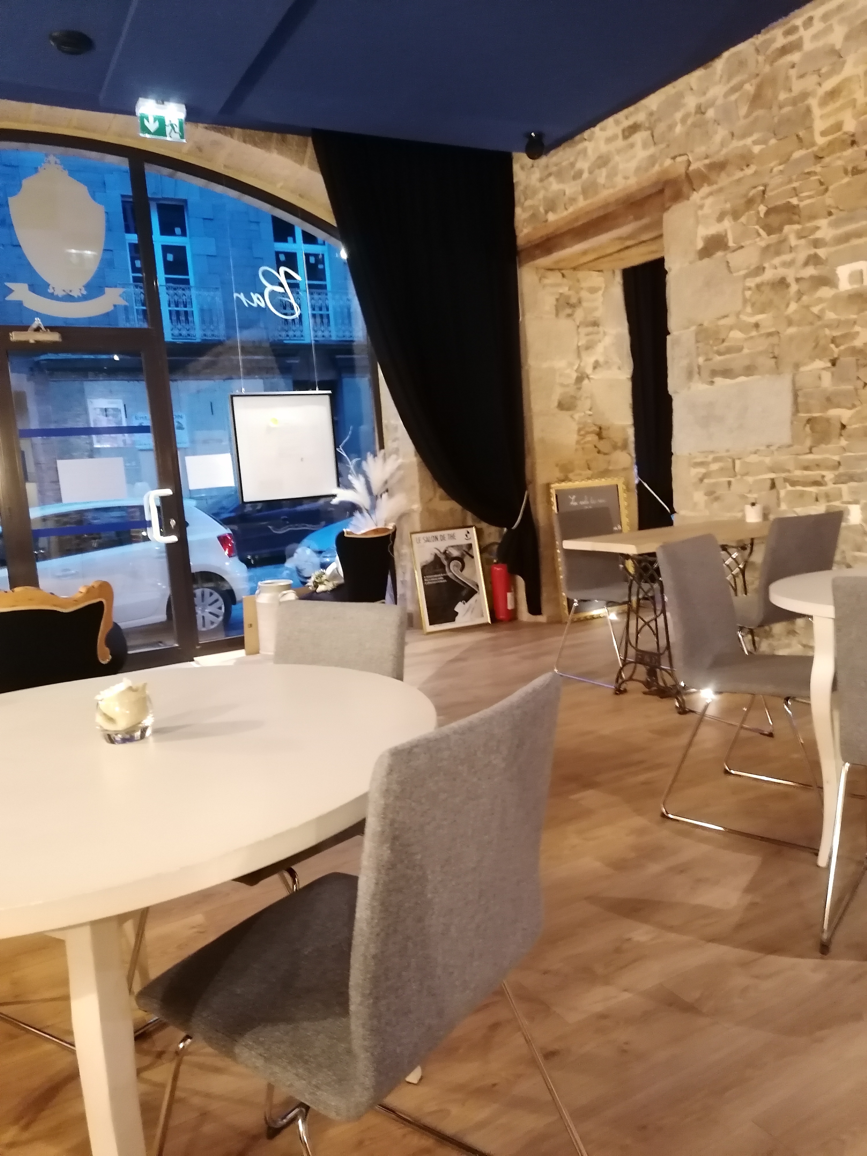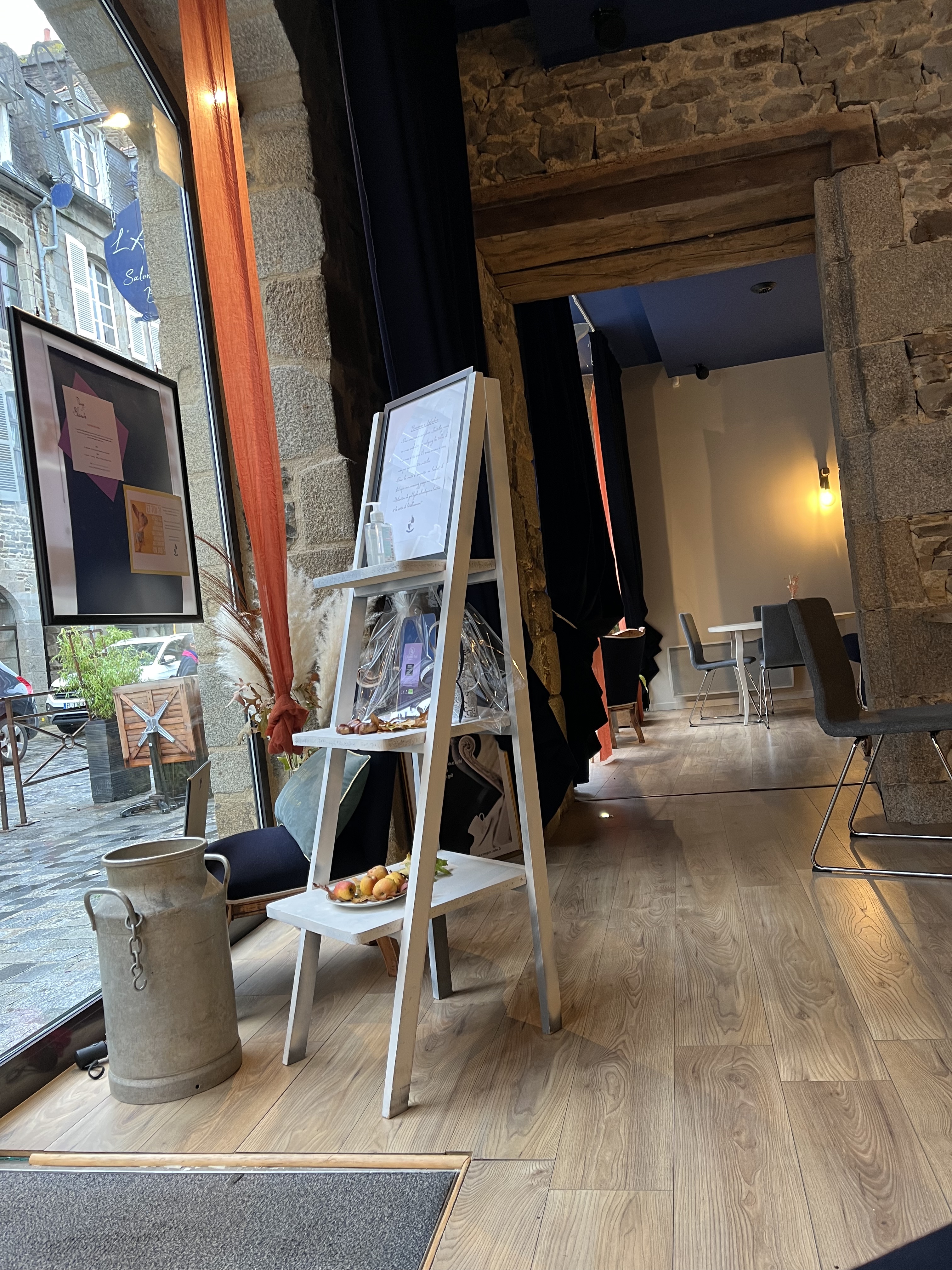 Une belle expérience dans le vieux Fougères ! Fraîchement ouvert ce salon de thé-bar à tout pour plaire. Calme et confortable ce lieu est chargé d'histoire par les pierres apparentes qui sont mise en valeurs. La maîtresse des lieux à le sens de l'acceuil et le goût en terme de décoration. Fauteuils confortable et banquettes sont à notre disposition pour déguster des pâtisseries accompagnées d'un café ou un thé. Ouvert aussi le soir pour bruncher entre amis ou collègues avec une offre qui reste à découvrir !