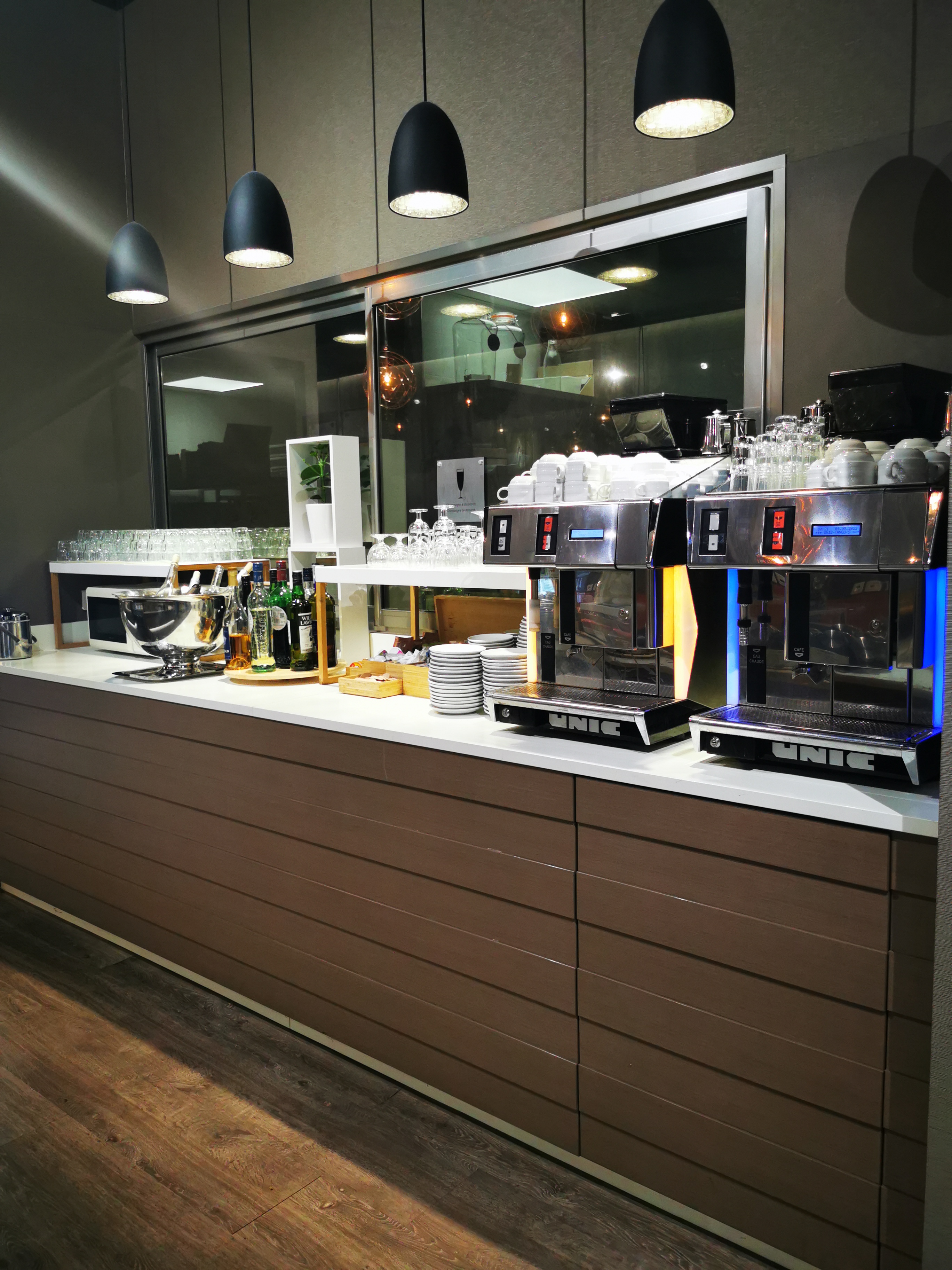 Un lounge très propre et moderne. Bien équipé et nourriture variées.
