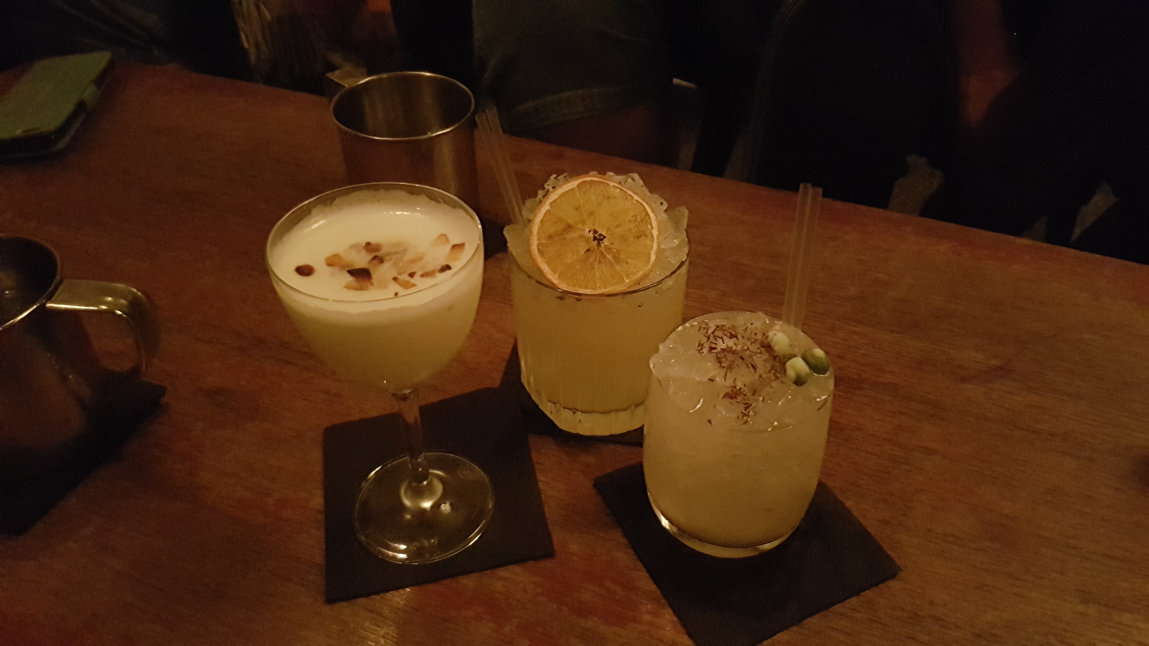Très bons cocktails, ambiance tamisée agréable et nous avons pris plusieurs choses à manger avec les boissons qui étaient franchement exceptionnelles. J'y retournerai !