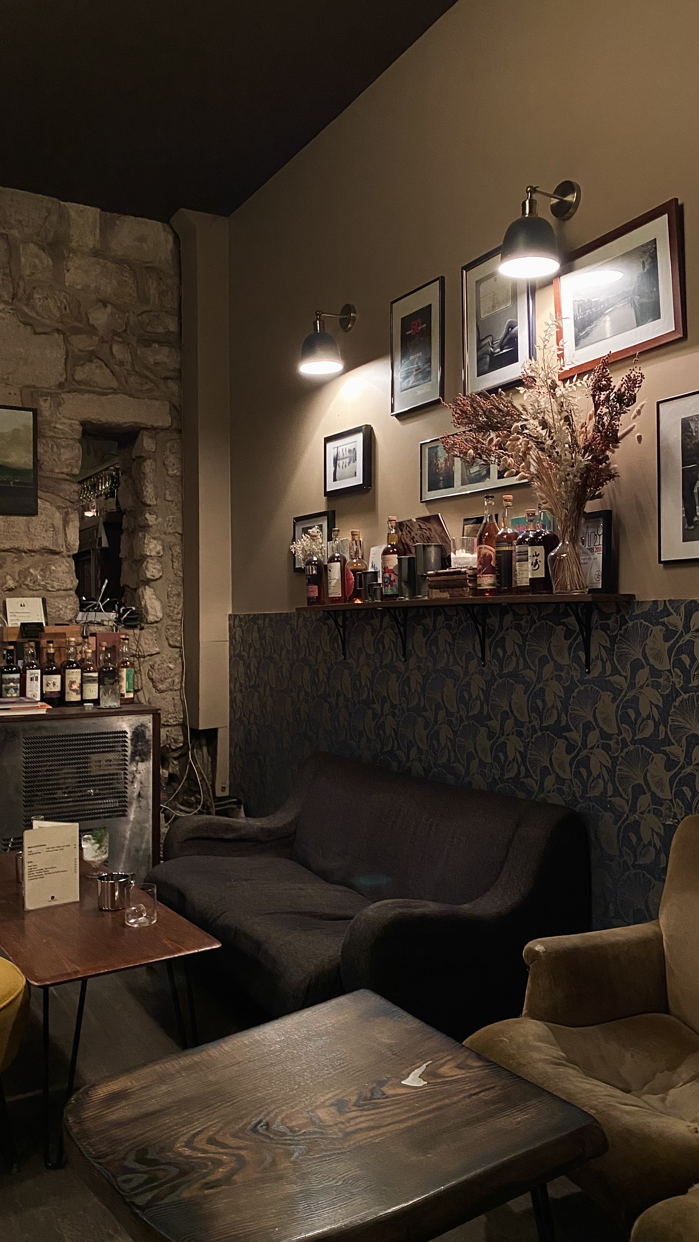 Malgrès la salle un peu petite, les pierres apparentes des murs donne au bar un certain charme. Les coctkails sont originaux mais très bon. Il faut dépasser les préjugés. Des hors-d'oeuvres sont proposés avec les cocktails qui sont un peu plus classic mais qui valent le détour