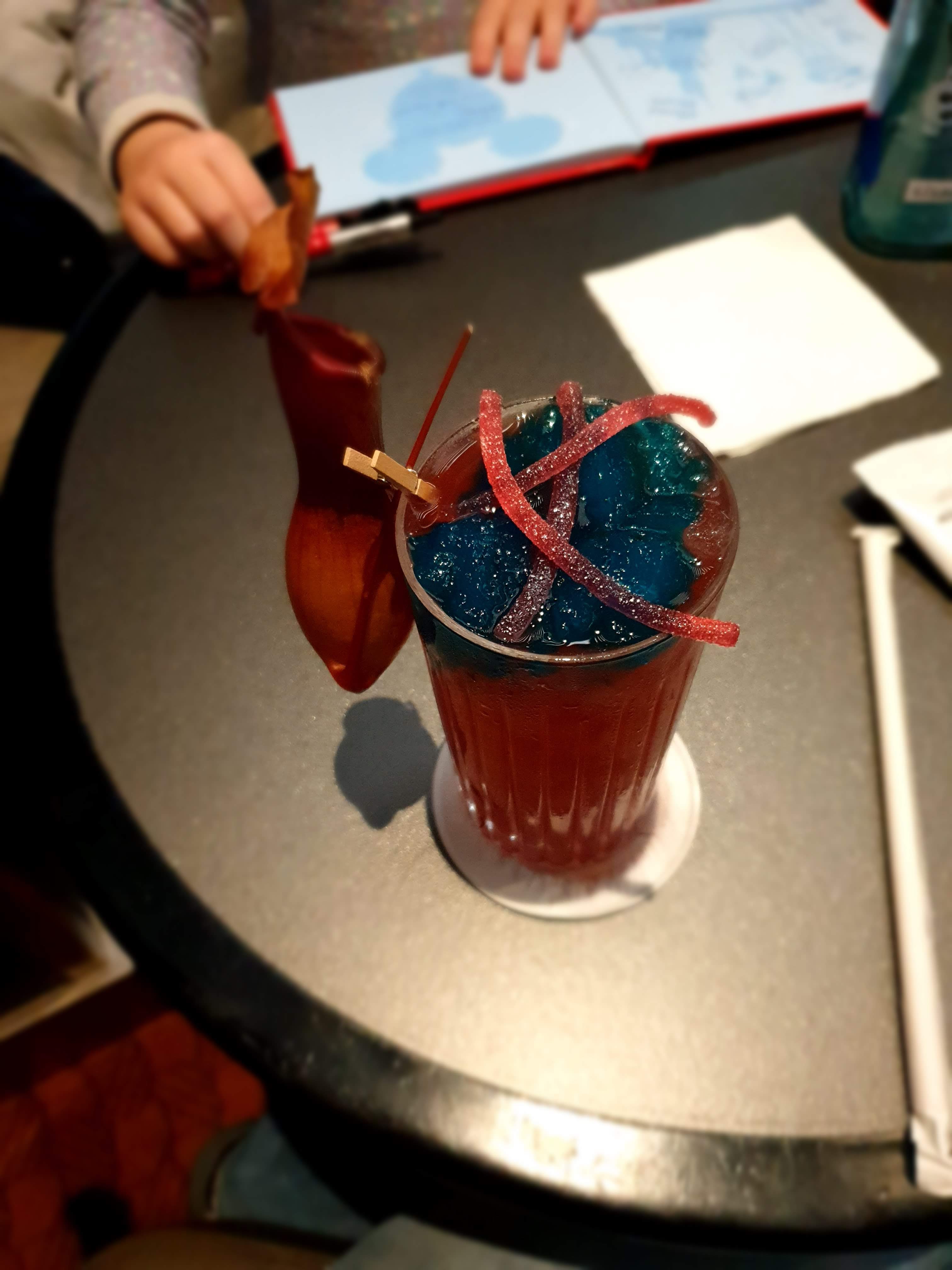Des cocktails bien sympa et originaux. J’ai pris un cocktail sans alcool (incredible cocktail). Les cacahuètes sont offerts à discrétion. Le personnel est au petit soin (sans demander, j’ai eu une 2ème paille pour que mon épouse puisse goûter). Le décor est magnifique. Un seul bémol : le prix / 12€ le cocktail sans alcool et 16€ avec ! Mais bon… c’est Disneyland (une fois qu’on a cette donnée en tête on est moins étonné 😅).