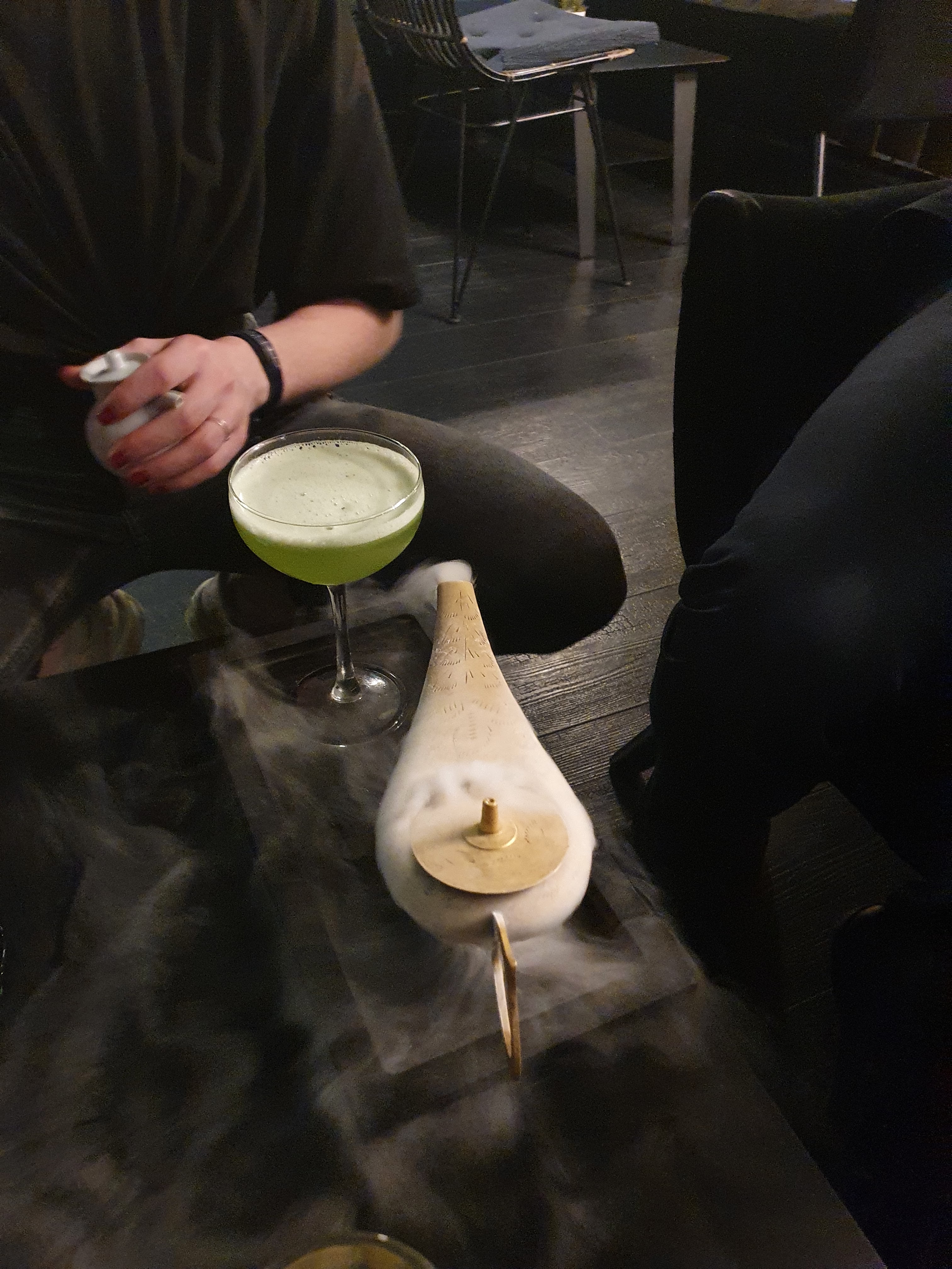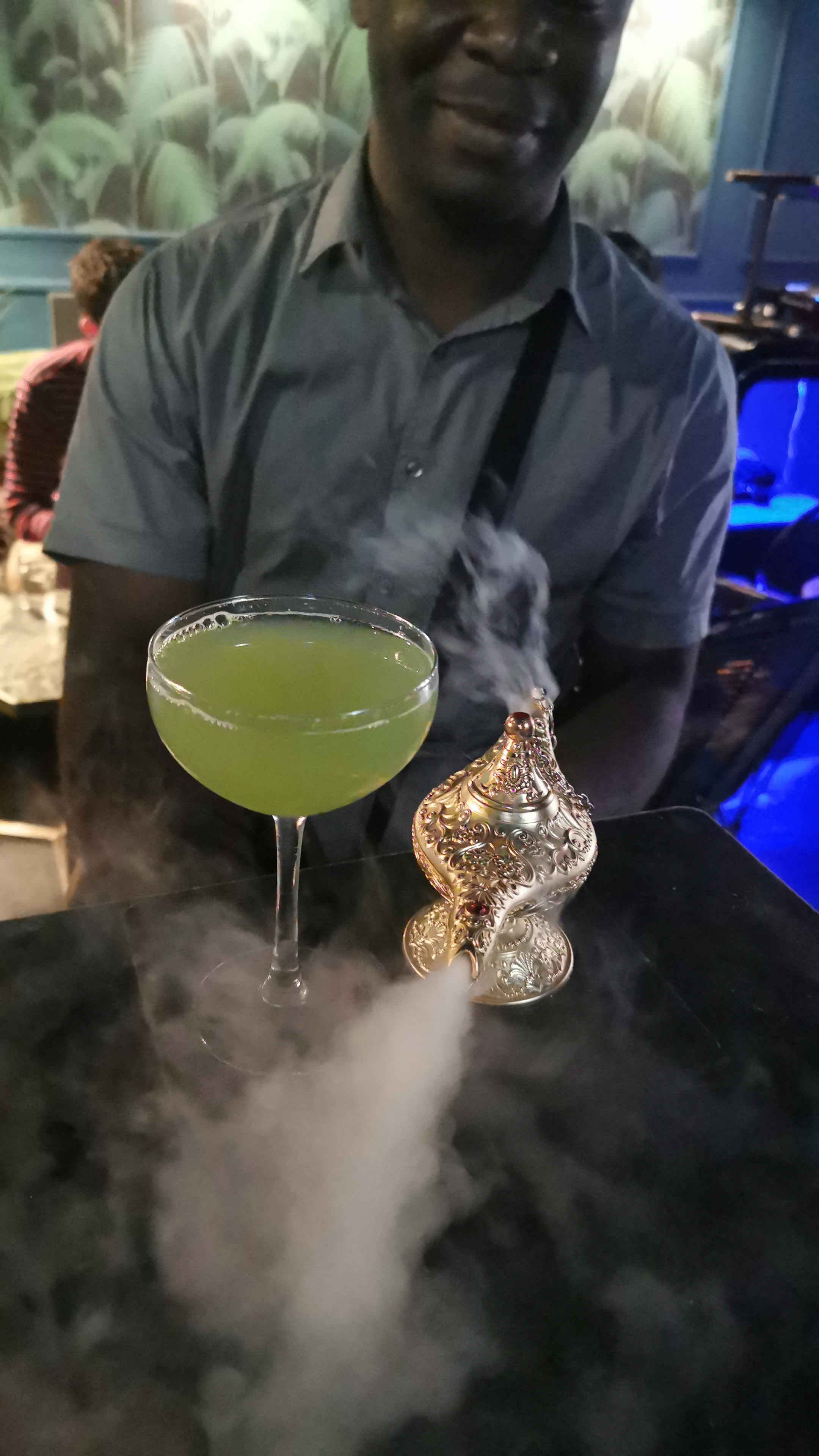 Un seul mot : déception. Si en effet la présentation des cocktails est magnifique, leurs goûts laissent complément à désirer. On tend même sur de l'amateurisme tellement la promesse annoncée n'est pas à la hauteur. Pour un cocktail Instagramable pas de problème mais vous payerez cher un cocktail finalement simple. L'intérieur est assez bruyant si on est sur les tables sur le côté, car les sièges bien que confortables sont éloignés les un des autres. Les serveurs/barman sont ultra sympa mais on vous donne votre cocktails sans vous le présenter. Typiquement le mien avait deux verres identiques sauf que l'un avait de la mousse l'autre non, sans raison. Et une fumée soit disant au gingembre qui ne sent pas du tout et ne sert à rien.