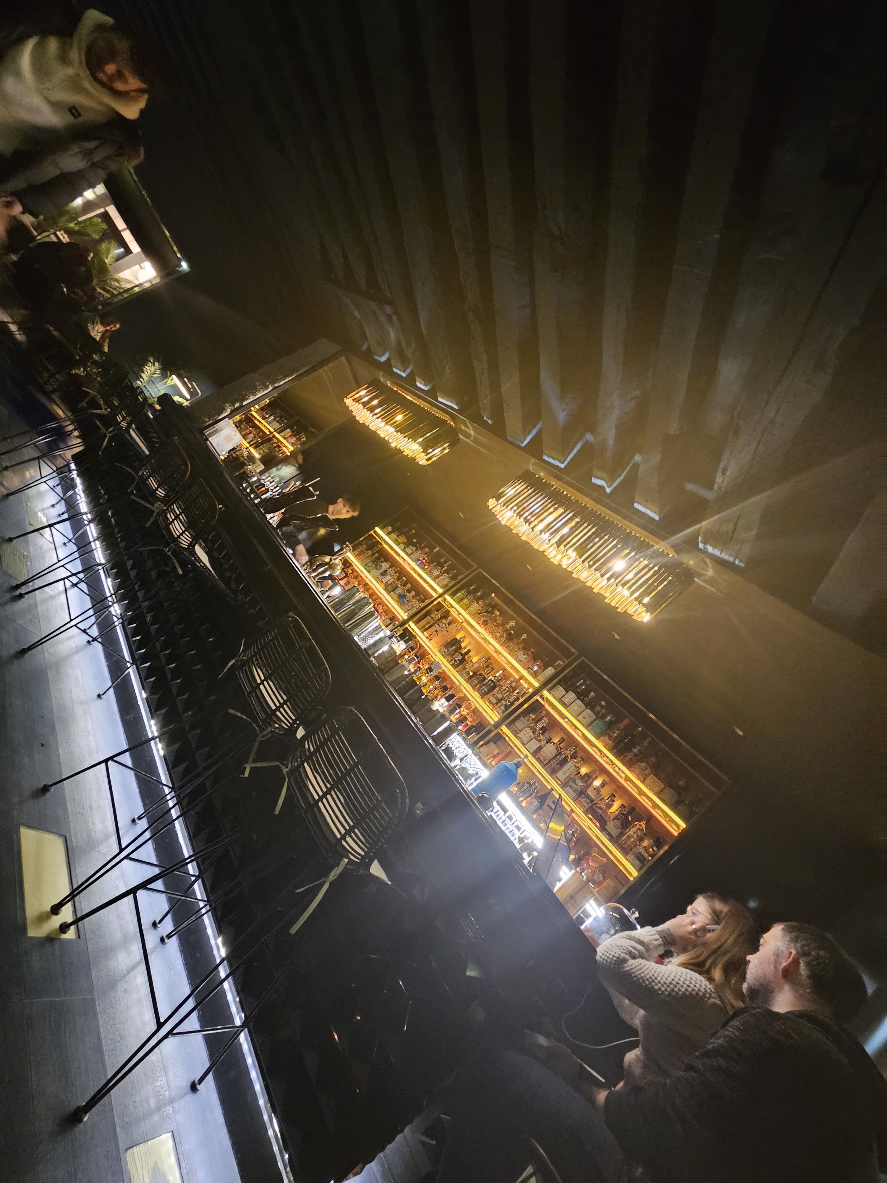 Je suis allé boire un verre. Personnel très gentil, ambiance agréable si vous recherchez un bar à l'ambiance sombre avec de la bonne musique. Les boissons étaient bonnes mais un peu trop chères, principalement à cause de l'exposition et du spectacle qui les accompagnent.