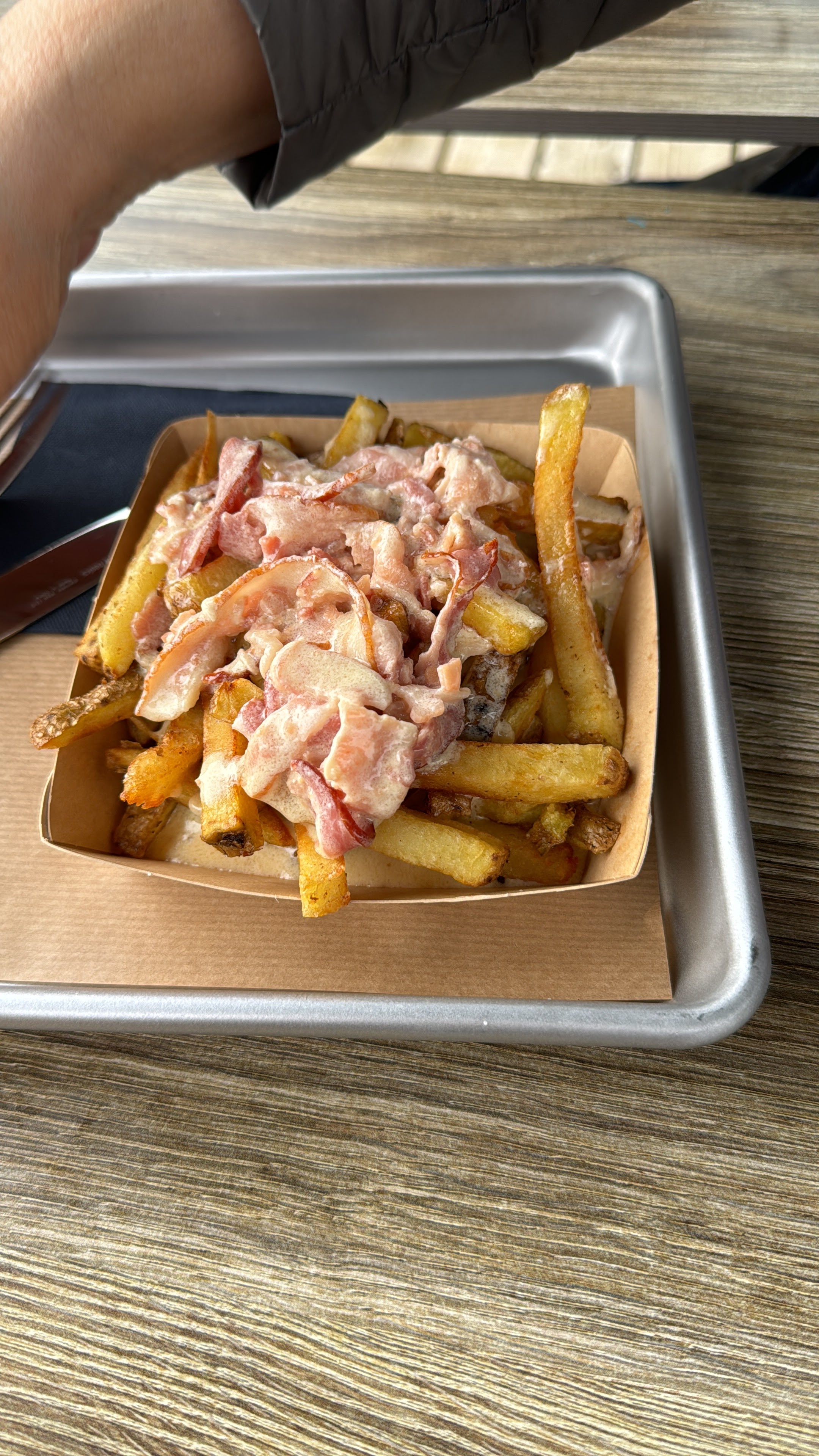 Découverte ce jeudi. On voulait absolument être dans les premiers à tester. Endroit très cosy, personnel sympathique et accueillant. La cuisine version streetfood est vraiment savoureuse. On y retrouve évidemment les frites au lard, plat signature de M. Braure. Plaids à dispo si petits frissons très bonne idée. Possible aussi de jouer aux jeux flamands ou de faire une pétanque. Démarrage, il y a encore un peu de réglage à faire notamment ne pas laisser un cendrier plein à 15 cm d'une place. Bref j'attends que le rodage soit fini pour revenir et mettre un 5 étoiles
