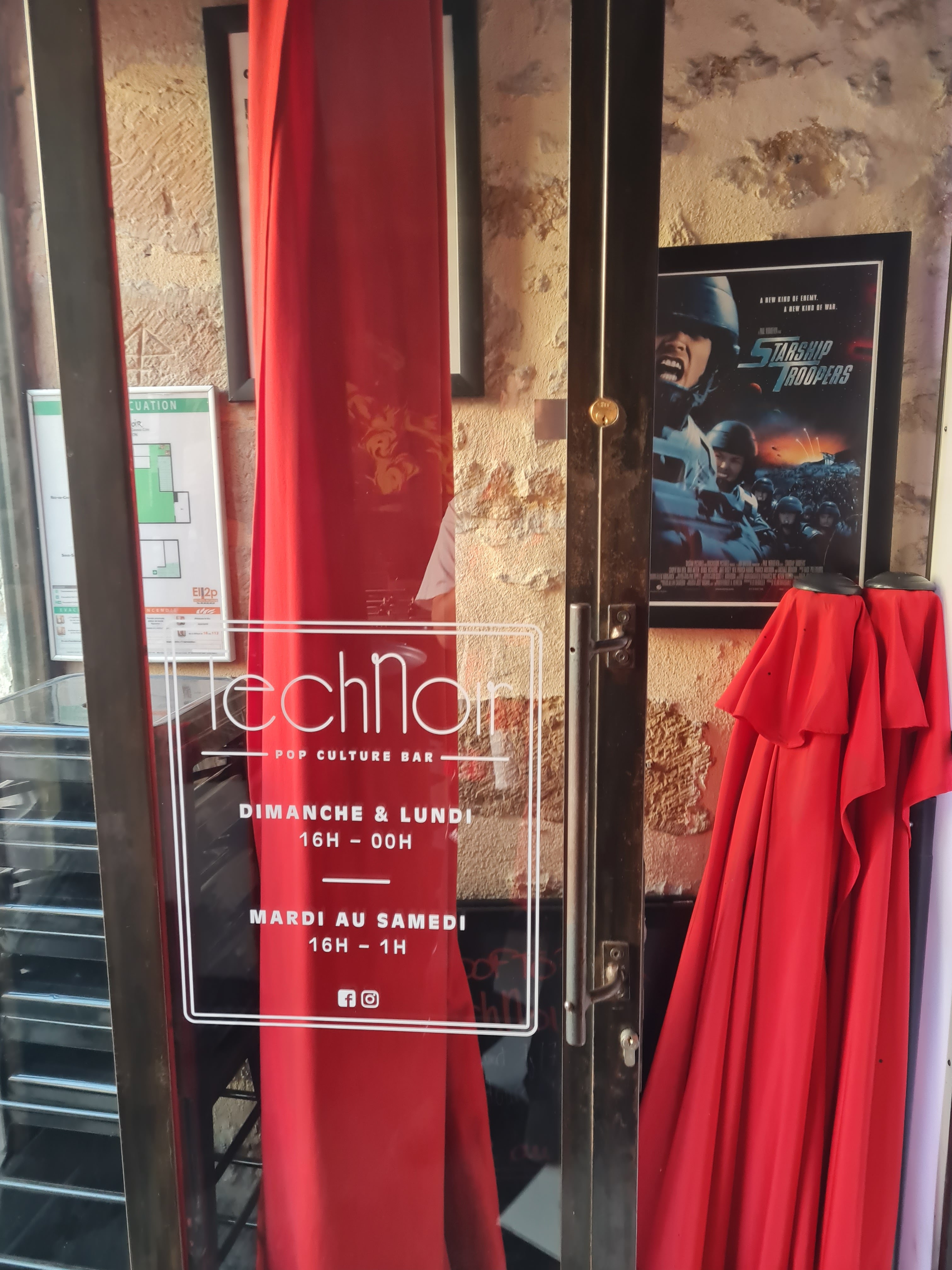Service amical et ambiance agréable. Baby-foot et flipper sur place. Projecteur grand écran qui diffuse des films de temps en temps. Je viens de regarder la scène Terminator à TechNoir en prenant un verre dans un bar à thème TechNoir. Plutôt cool 🤩.