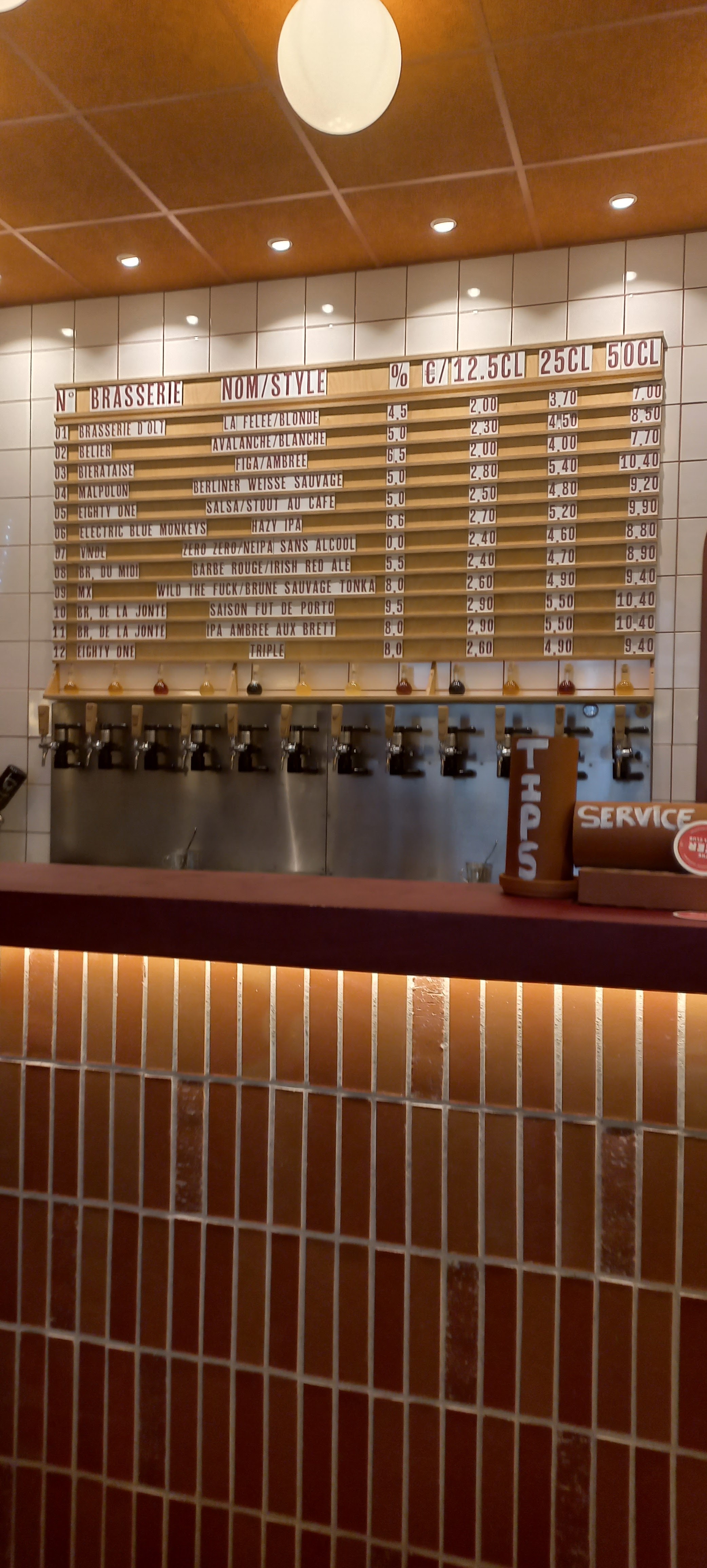 Un large choix de bonnes bières. Des boissons sans alcool sont également proposées pour qui comme nous, se sont arrêtés avec les enfants après la halle de la machine. La planche mixte aussi était bonne. L’endroit est cosy et la décoration change de ce que l’on voit habituellement. Le propriétaire a déjà donné une âme à ce lieu pourtant flambant neuf. Nous y reviendrons certainement, mais entre amis cette fois-ci.