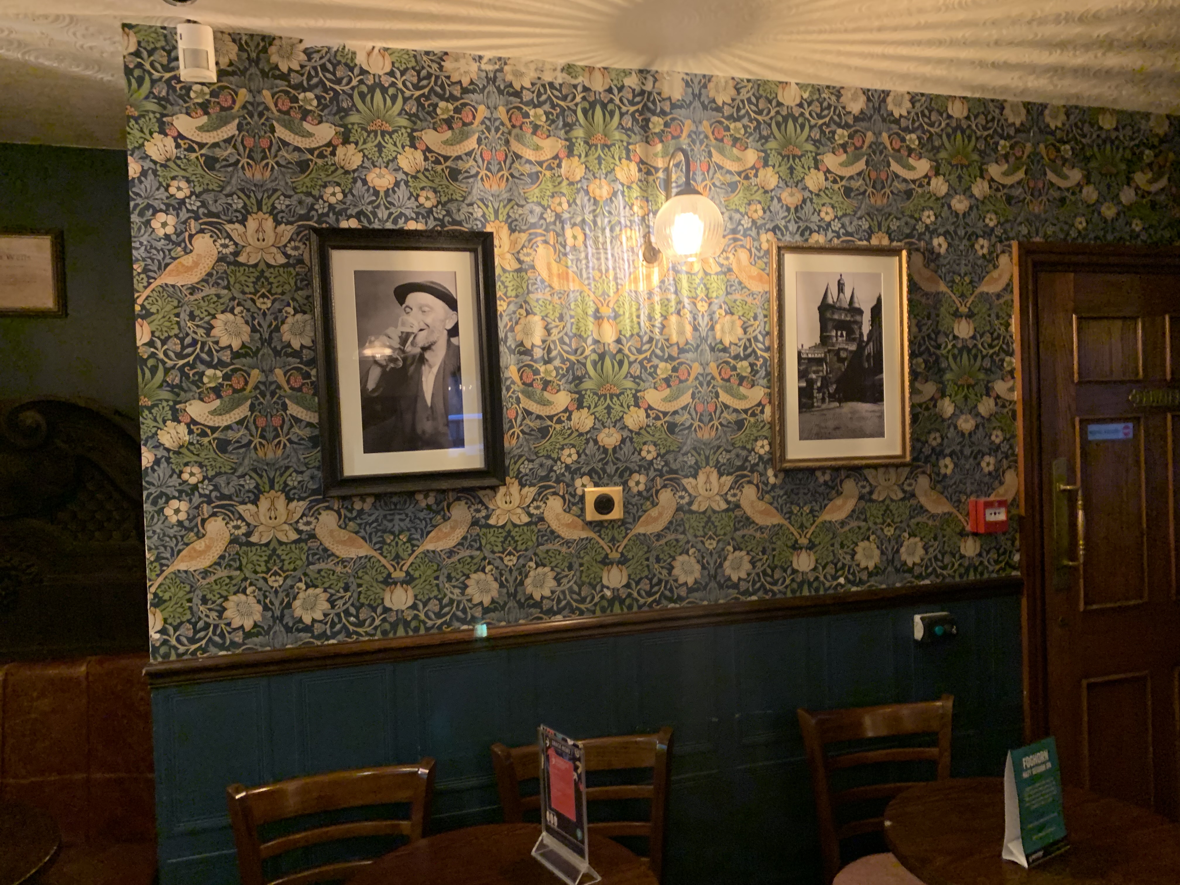 Nous nous étions arrêté pour y boire un café l'après-midi. Lieu agréable. Belle déco pub anglais.