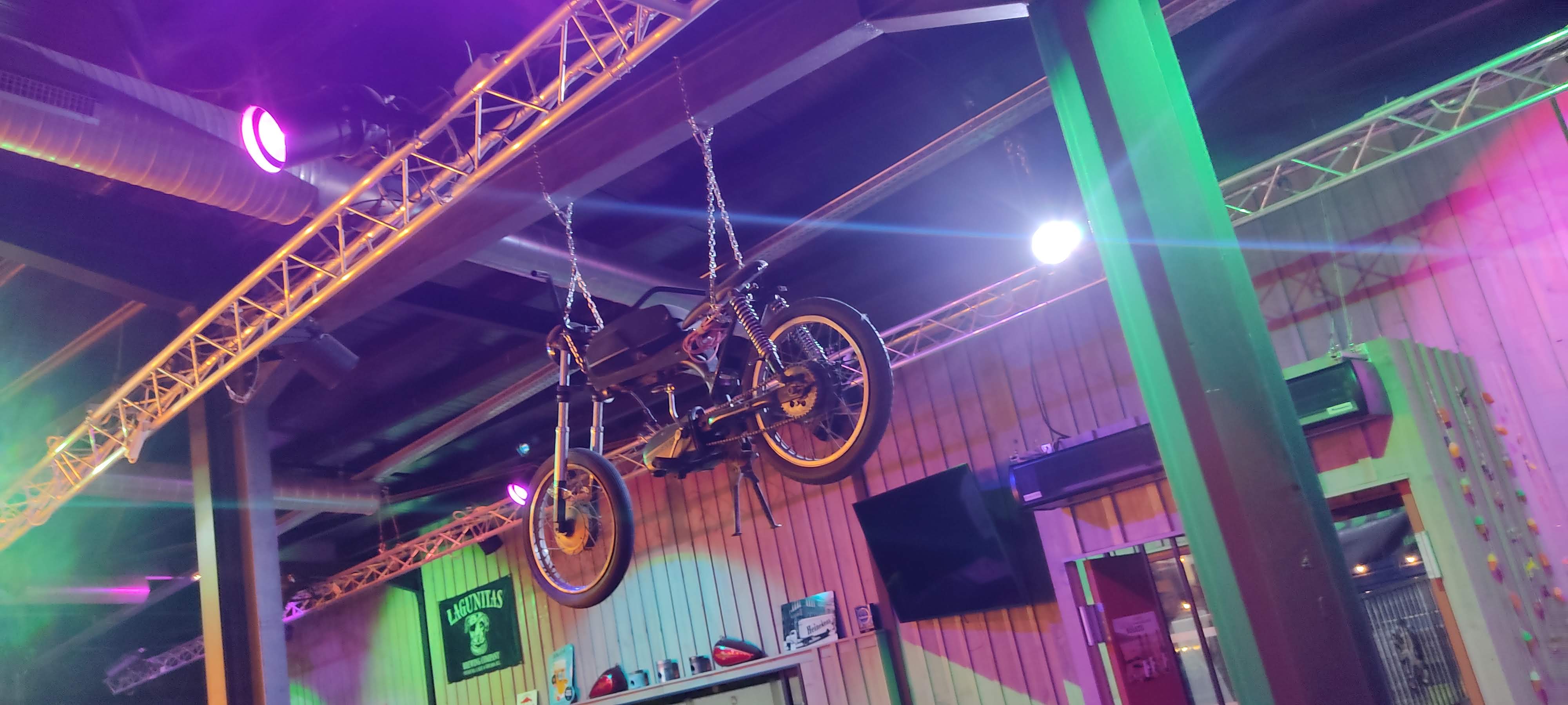 Bien de la place pour les motos, deux billards. Des jeux de société, optez pour une bière connue