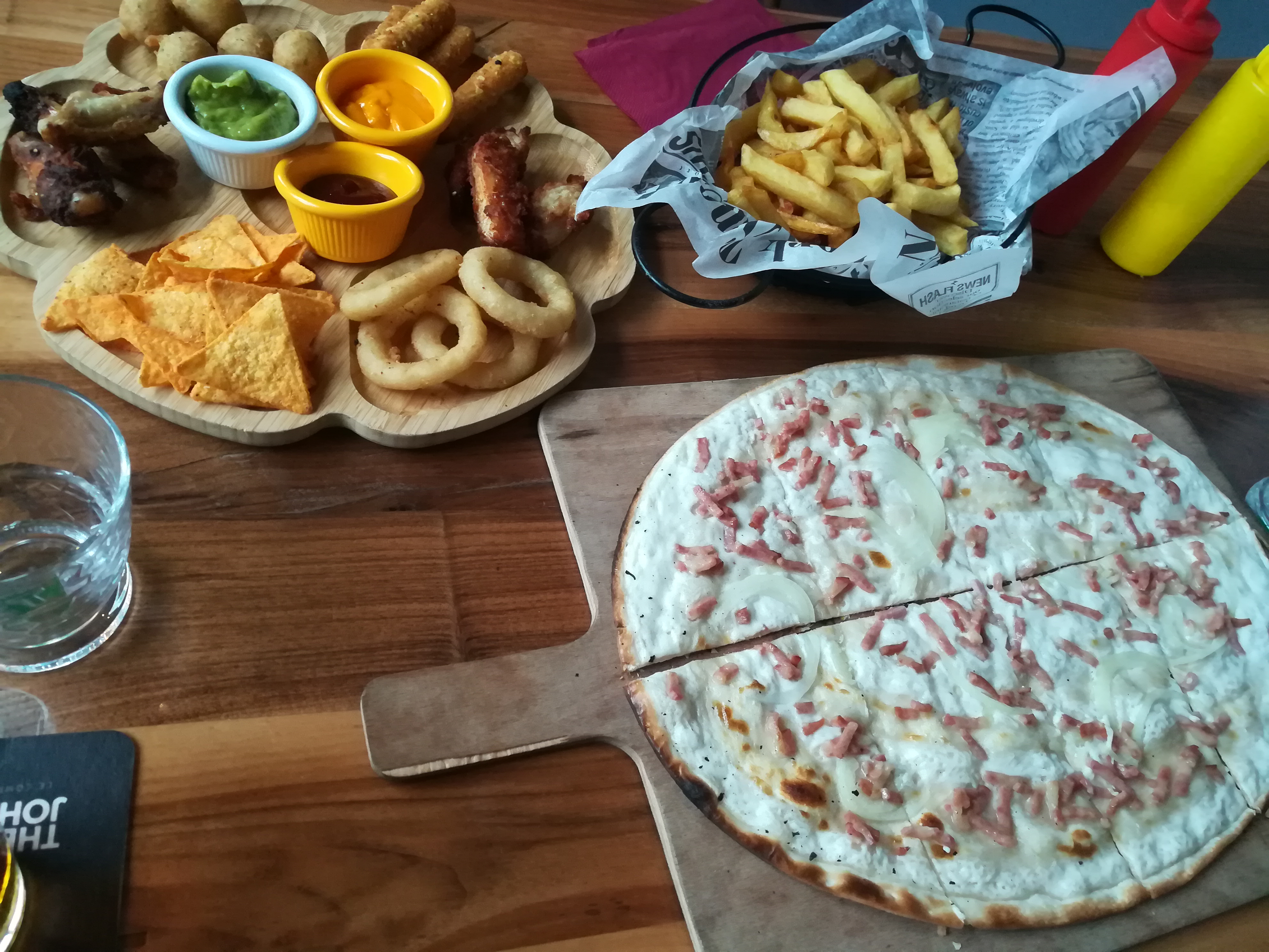 Bar sympa Déco industriel Musique rock Boire de la bières + spécialités irlandaise et on peu y mangé de bon plats ( tarte flambée, burger, Fish and chips ) jusqu'à très tard le soir, ou tôt le matin.😜