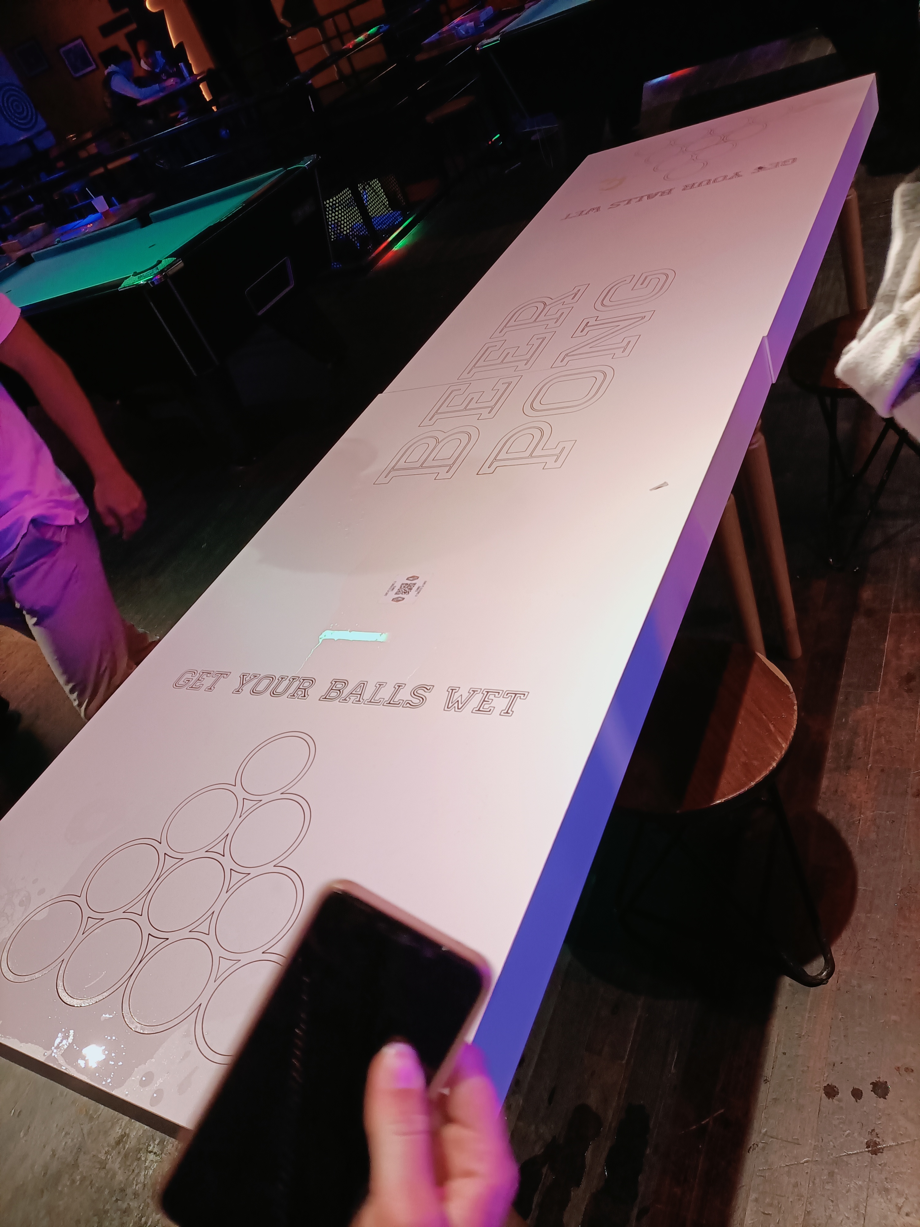 les lieux sont sympa, des babyfoot, etc et le mur à bière c'est une bonne idée, mais honnêtement à chaque fois je suis déçu, les conso sont un peu chères et pas franchement bonnes. La musique c'est compliqué, la dernière fois le DJ faisait surement exprès d'être aussi mauvais. Puis les serveurs sont pas super sympa, pas méchants mais pas du tout agréables.