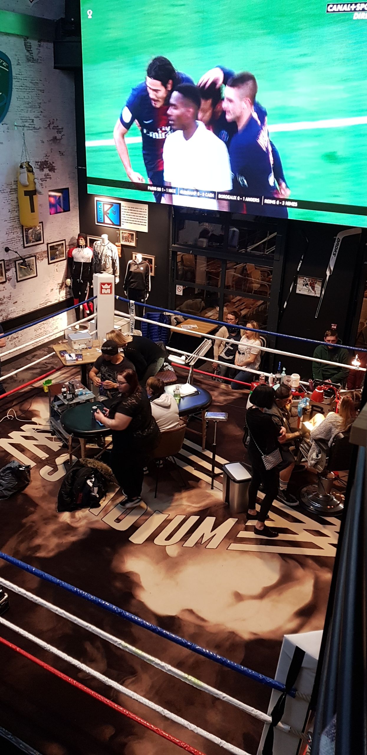 Enfin un bar au concept novateur à Rouen!!! Un endroit fait avant tout pour les amoureux du sport. Une déco moderne, originale et sportive. Un ring pour accueillir des combats pendant les événements mais pas seulement. L'endroit est grand et bien aménagé : une belle terrasse avec vue sur la Seine, un rez-de-chaussée et un étage spacieux; des écrans géants pour ne rien manquer des évènements, des billards, des baby-foot, des fléchettes, une armoire avec jeux de société à disposition...tout est fait pour passer une bonne soirée. Et tout cela avec un DJ qui met une très bonne ambiance. Les serveurs, premières victimes du succès du lieu, sont sympa, souriants et rapides vu le flux des clients à gérer 👌🏻 Un lieu branché, où l'on passe toujours un bon moment et que je ne peux que recommander!