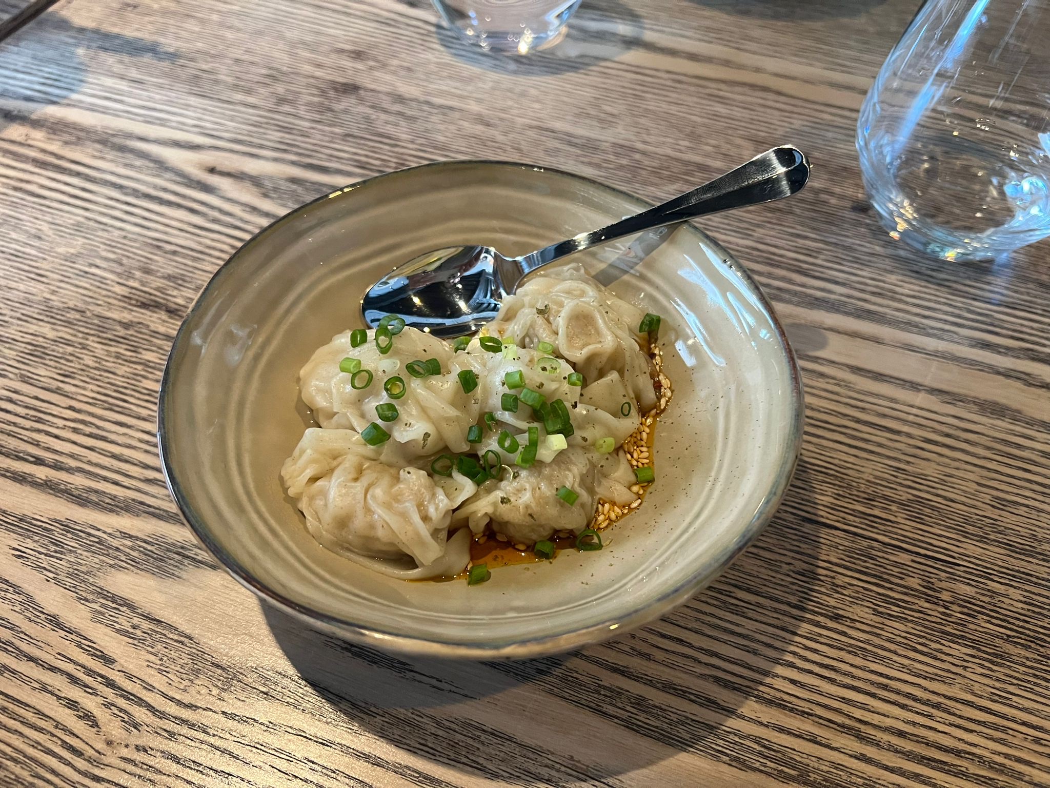 Ils connaissent très bien la sélection de vins et proposent une belle sélection de thés et de vins au verre. Je recommanderais également à tout le monde d'essayer les nouilles et le wonton si vous passez par ici à l'heure du déjeuner ! Super authentique et délicieux !