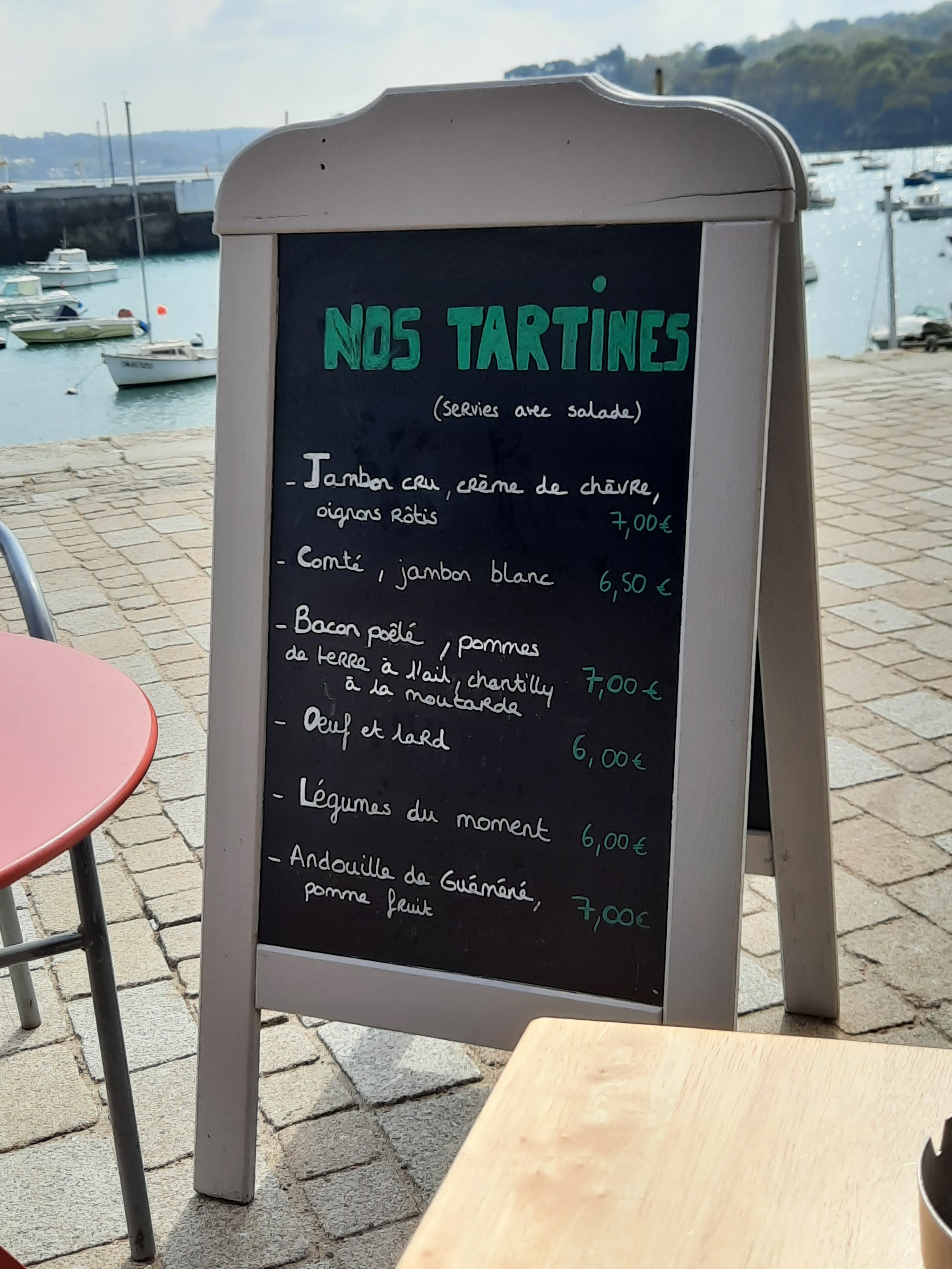 On arrive un peu tard pour les tartines mais apparemment elles sont en tout cas les patrons sont sympas et la bière de Broceliande est divine, un endroit chaleureux pour un moment partagé au top je recommande cette adresse pour toute personne qui veut faire escale à douarnenez