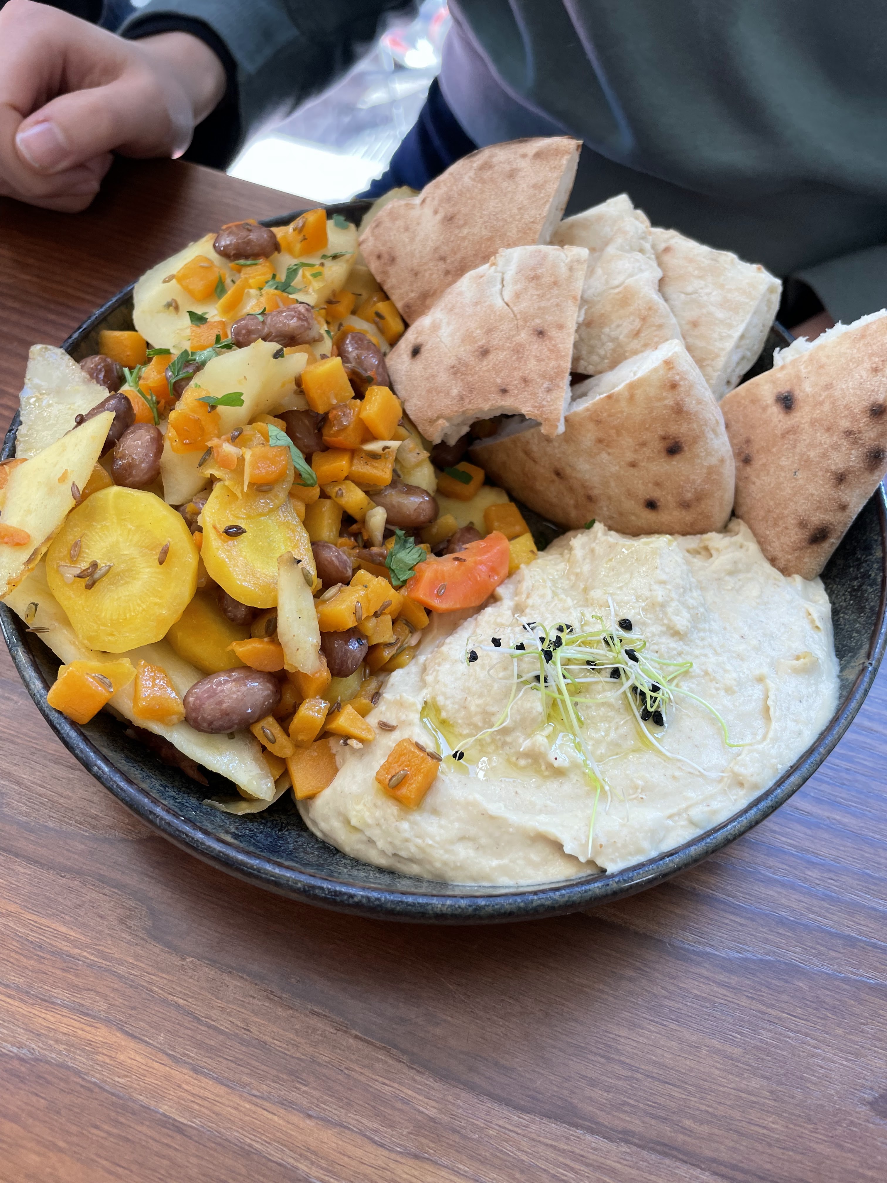 Nous avons super bien déjeuner, très bon pain pita et houmous, falafel et borek excellent, je recommande