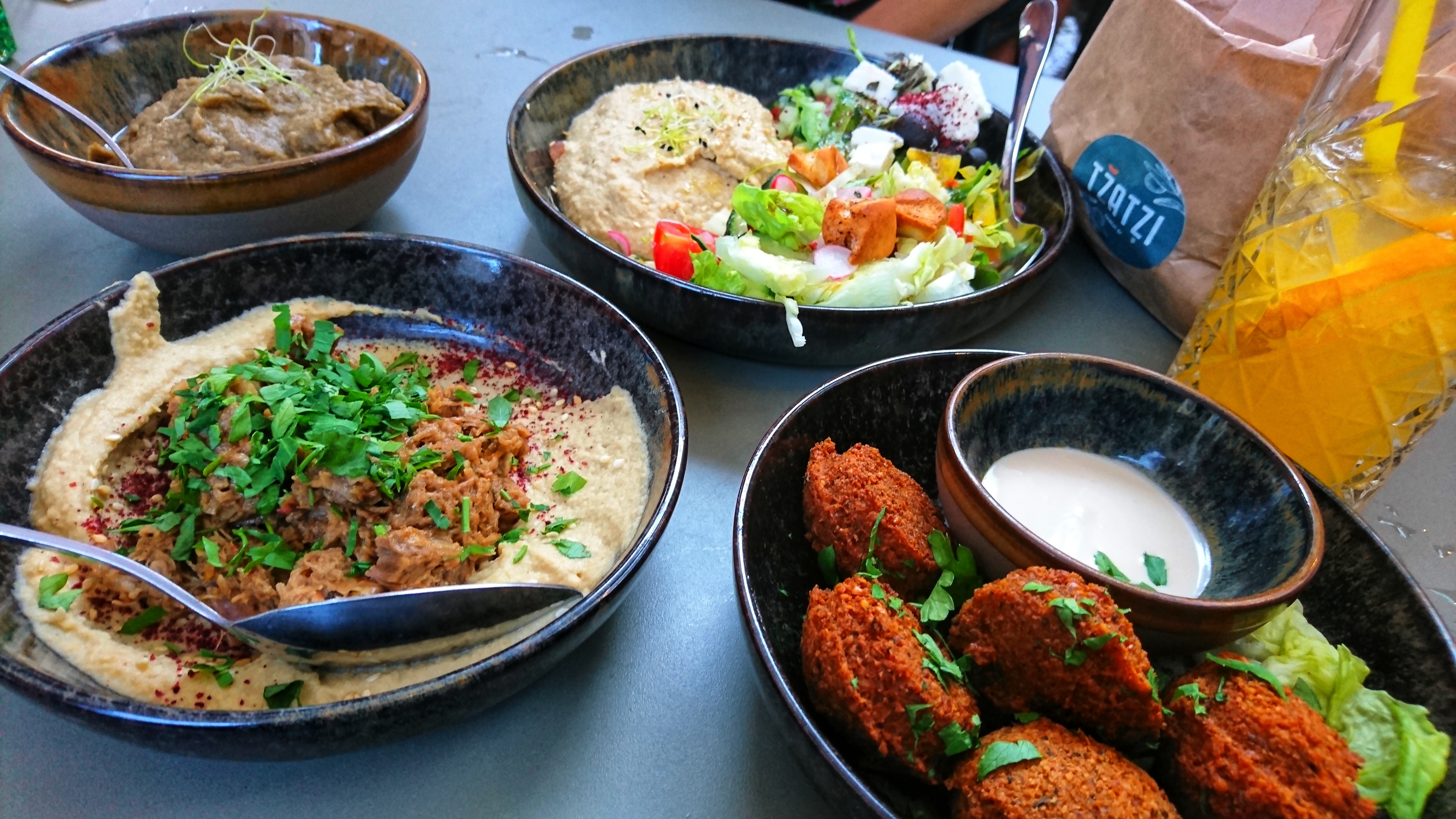 Restaurant très sympa, le personnel est top ! La terrasse est très agréable en été. Tous les plats que nous avons goûté étaient très très bons (falafels, tzatziki, poulet croustillant, patate douce et houmous!). Je recommande vivement !