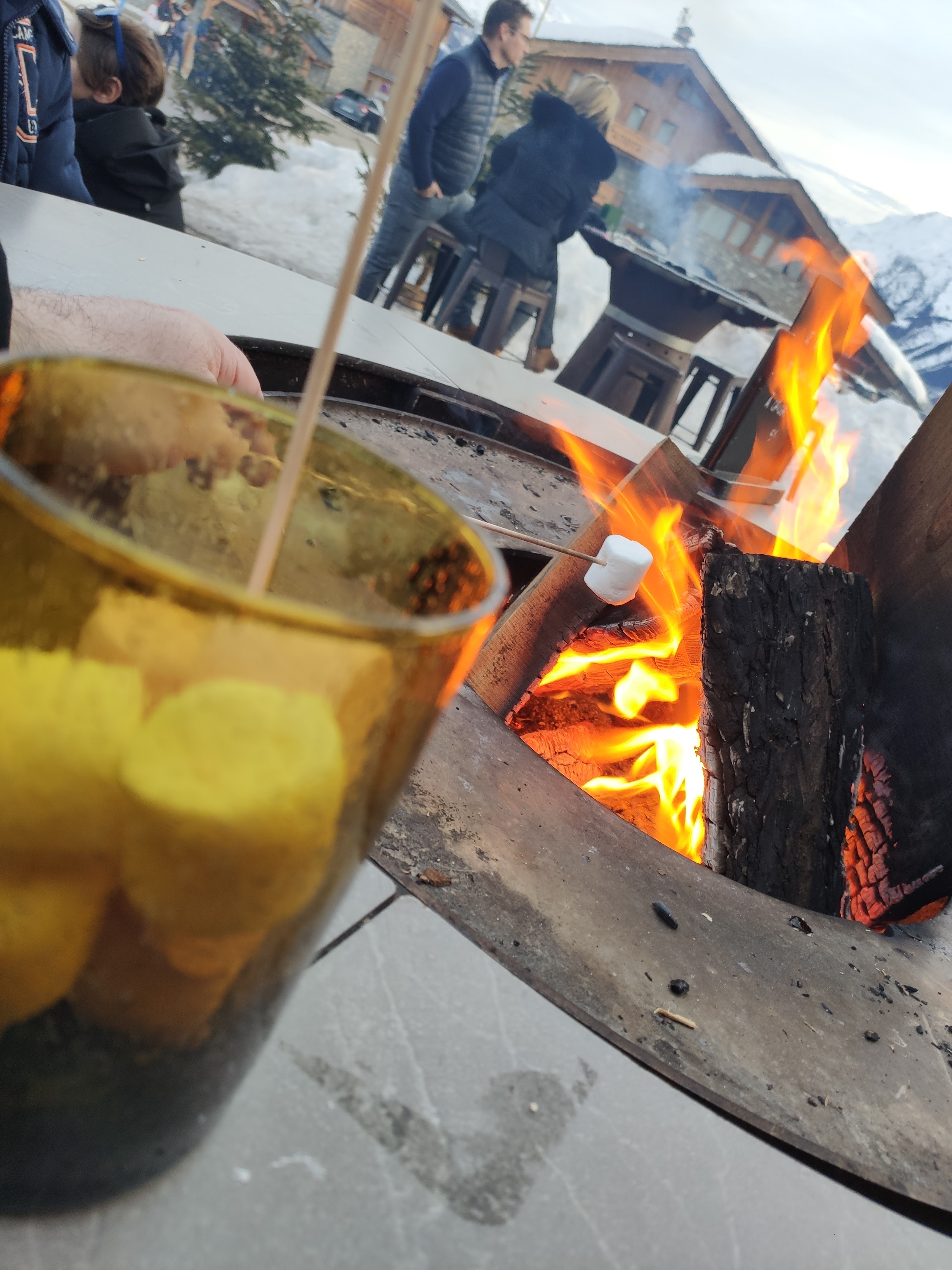 Excellent pour prendre un verre après une journée de ski. Foyers et guimauves. Bonne musique