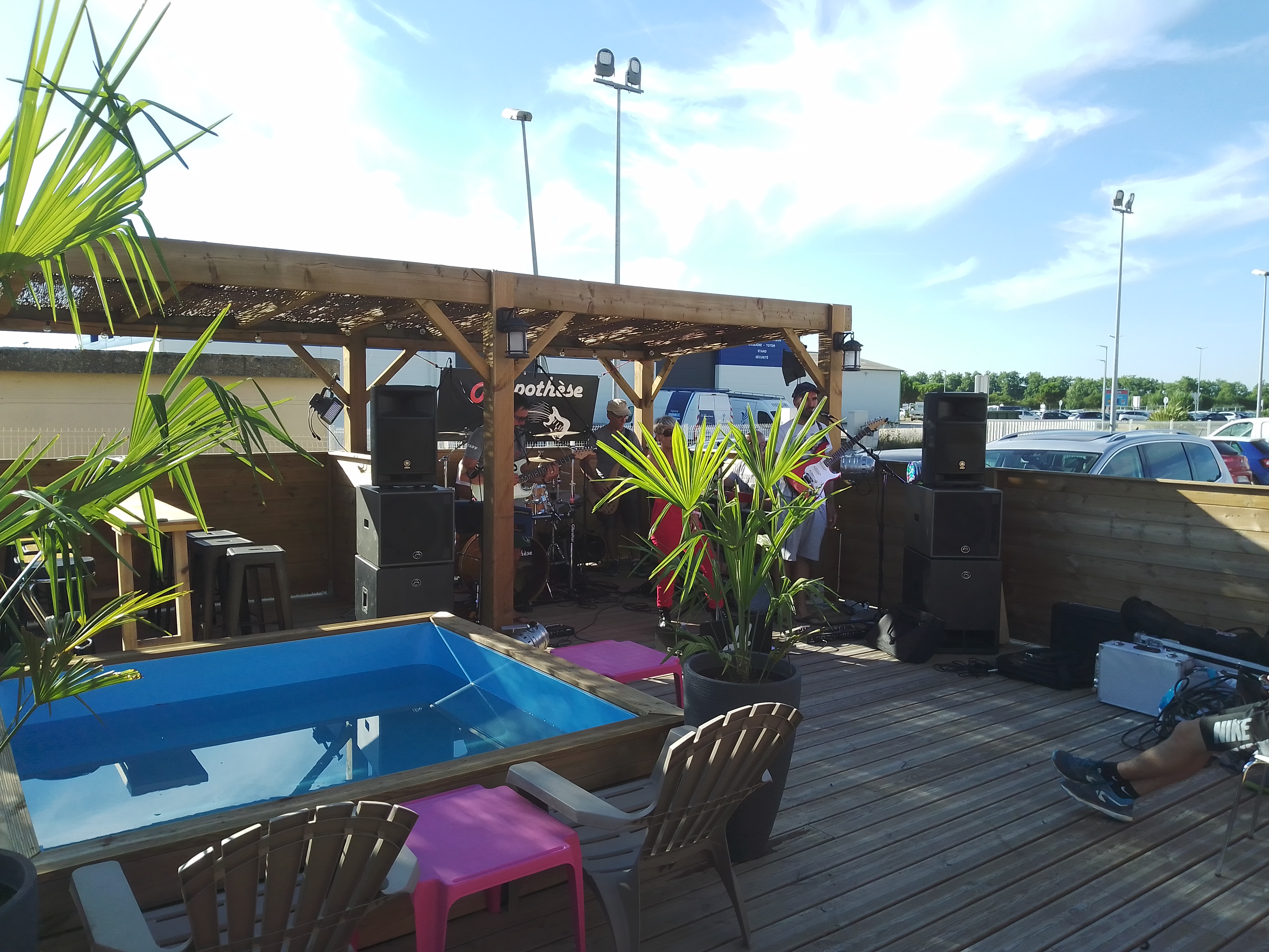 Lieu très agréable avec une grande terrasse en bois à l extérieur le personnel très gentil, en prime un groupe qui nous a fait passer une super soirée
