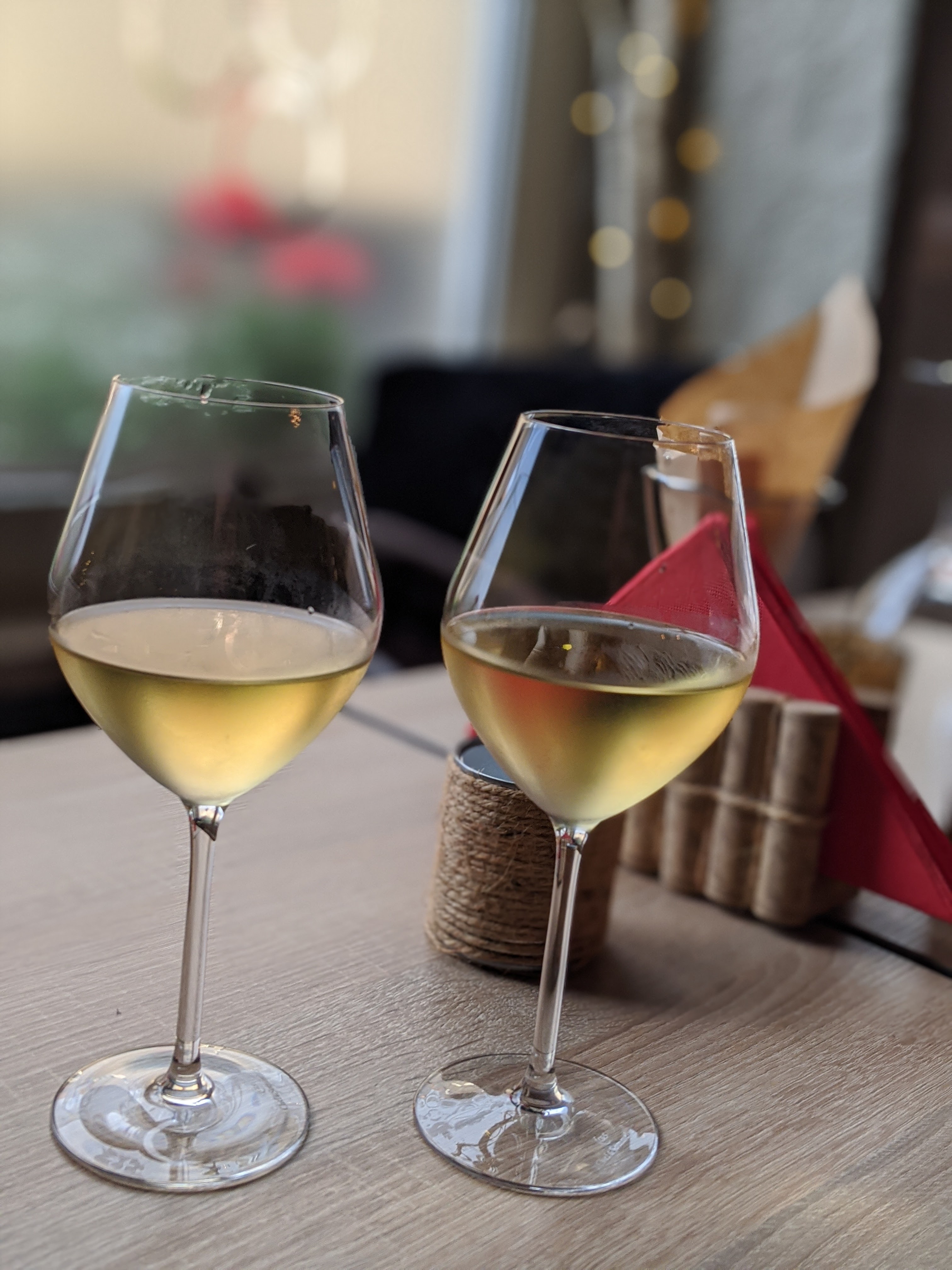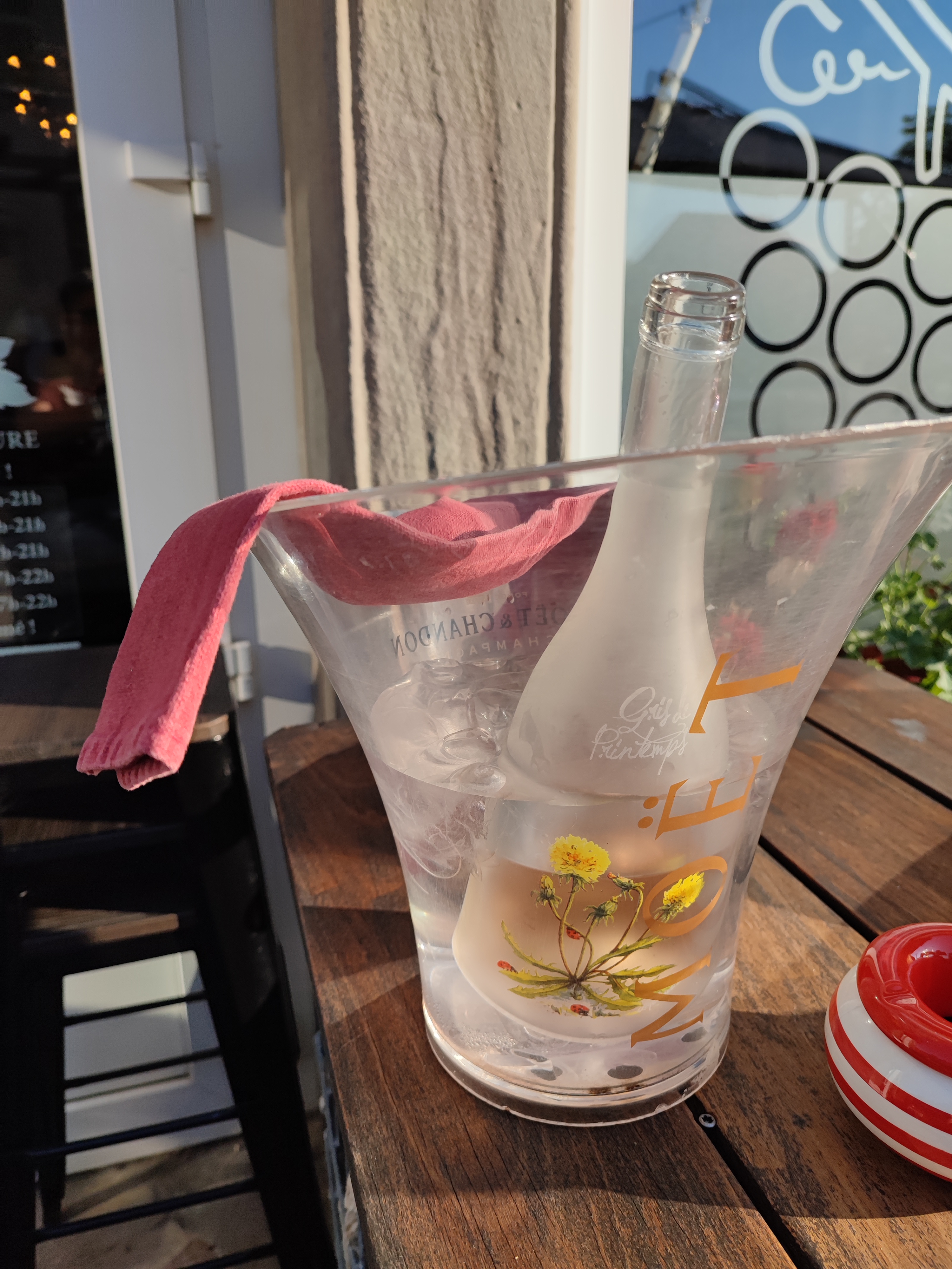 Concept et déco originale. Parfait pour un apéro en couple ou entre amis. Par contre je trouve dommage qu'il n'y ai pas plus de choix de vin au verre. À part ce détail, je recommande !