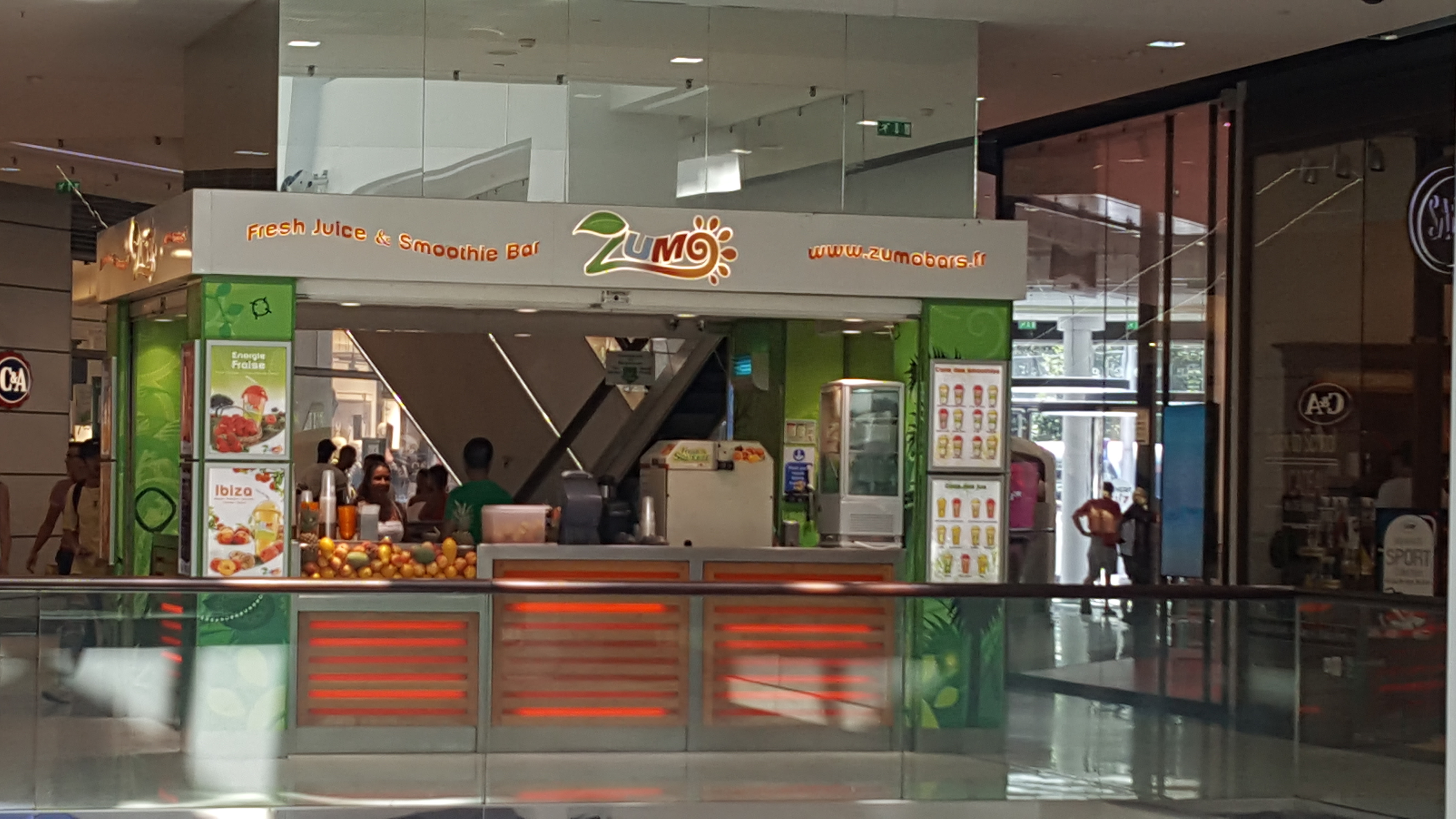 Le Vita-Juice où appeler aujourd’hui Zumo propose de superbes smoothie et jus de fruit pressé. Le service est extrêmement rapide ce qui est un véritable plus pour ce stand situé dans le centre commercial Nice Étoile. Équipe très pro et réglo. En bref, un excellent ensemble !!! 🧃🥤