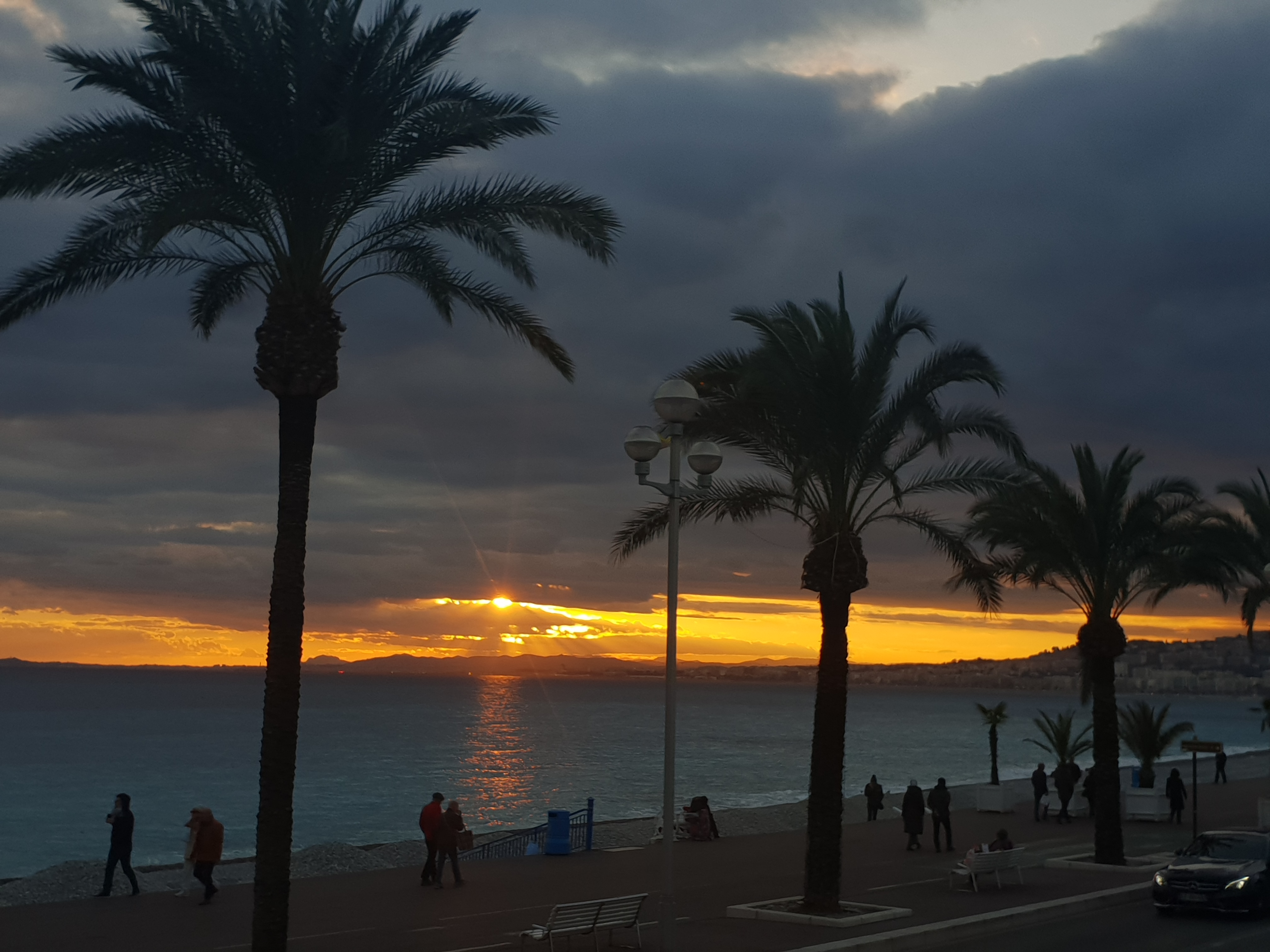 Bar cocktails super bons + qq tapas. Balcon et super vue : coucher de soleil sur la promenade des Anglais